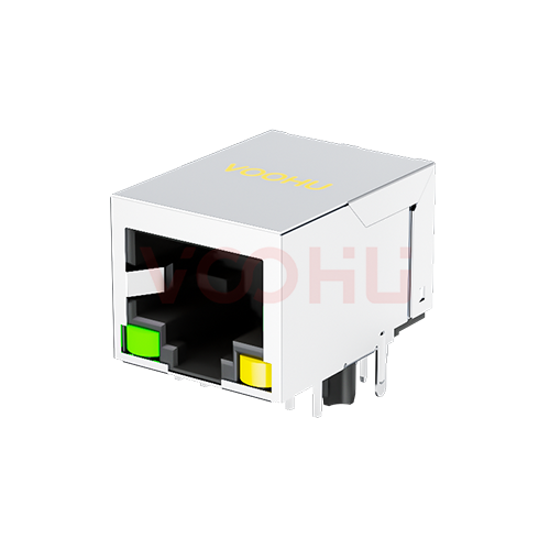 SYT111Q060AB2A1D 90° side insertion 1*1 Tab Down 100/1000M LED G/Y DIP RJ45