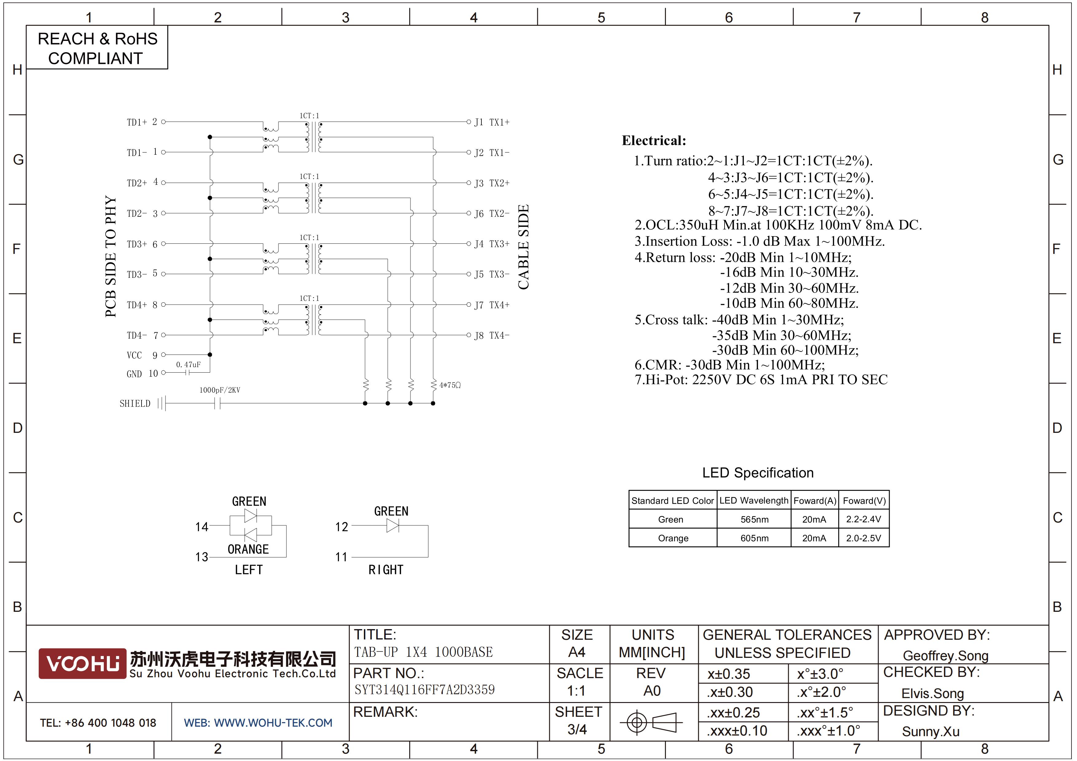 SYT211Q066CD1A4D  90°  1*1  Tab Up 100/1000BASE LED Y/G DIP RJ45