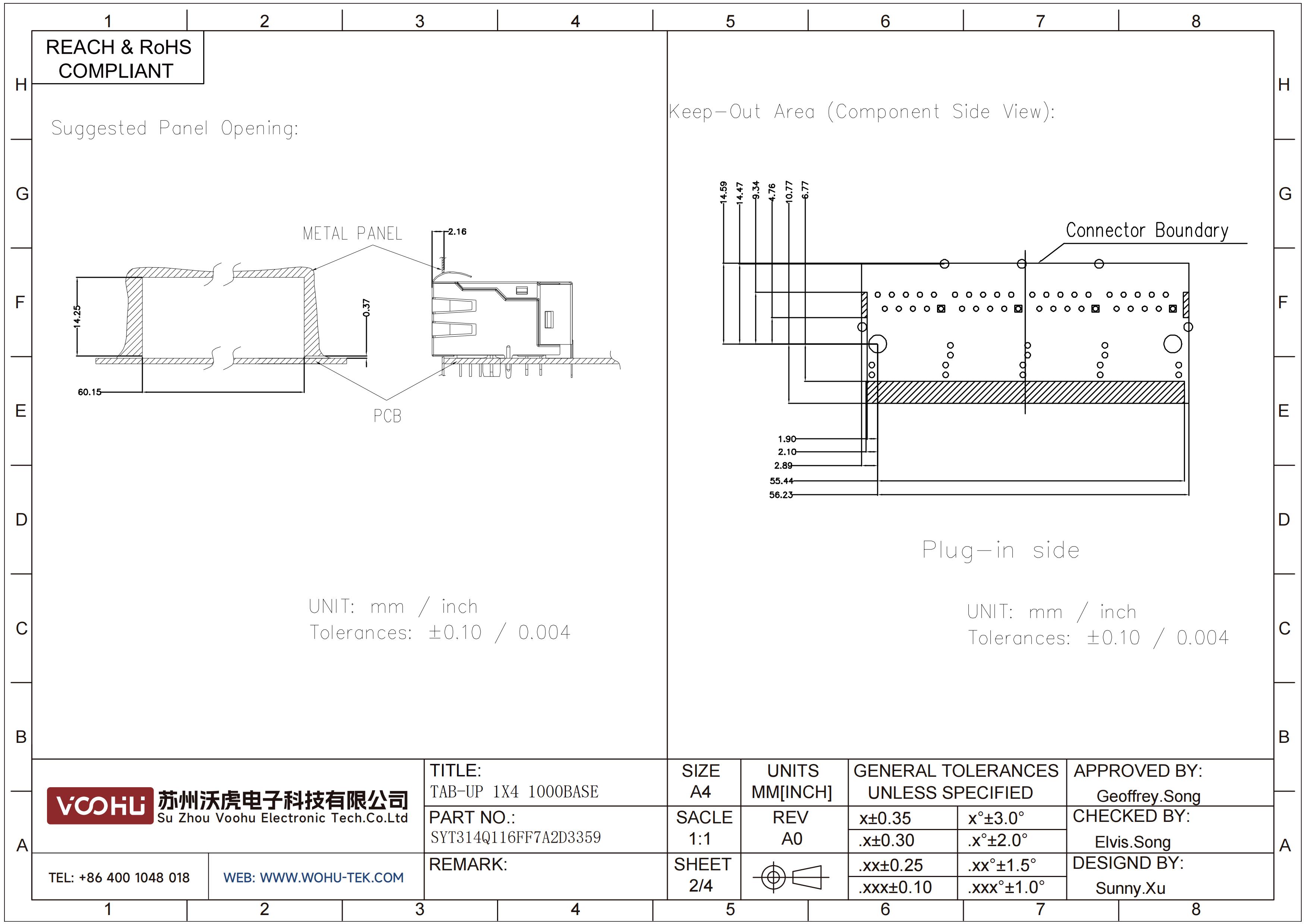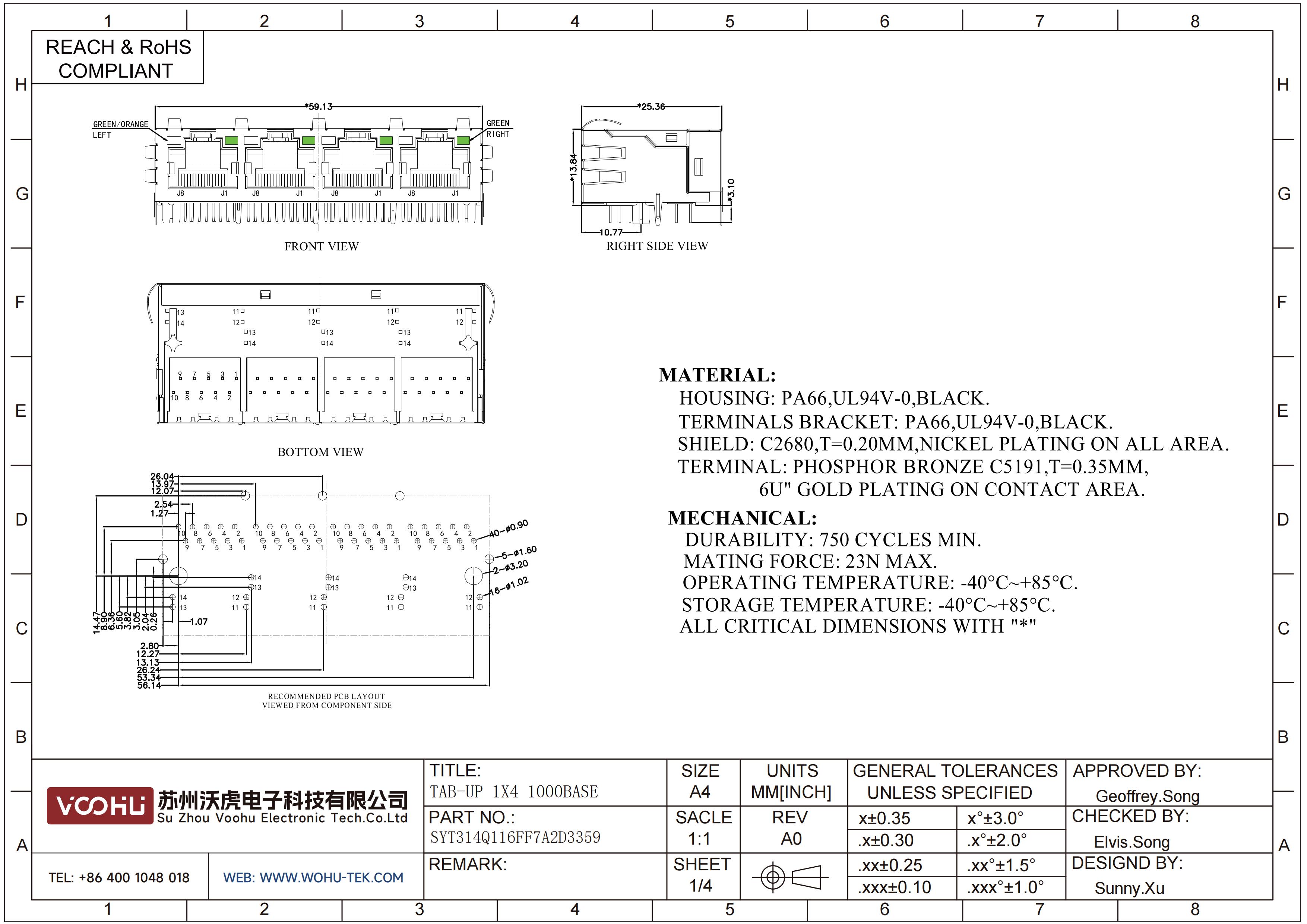 SYT314Q116FF7A2D3359 90° 1*4 Tab-Up 100/1000BASE LED GO/G DIP RJ45