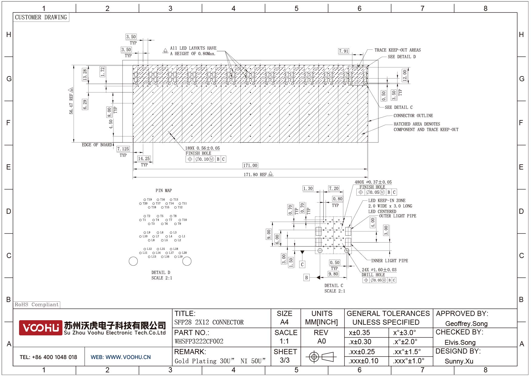 WHSFP32528F002 SFP28 2×8 25G Cage+Connectors Fiber Optic cages