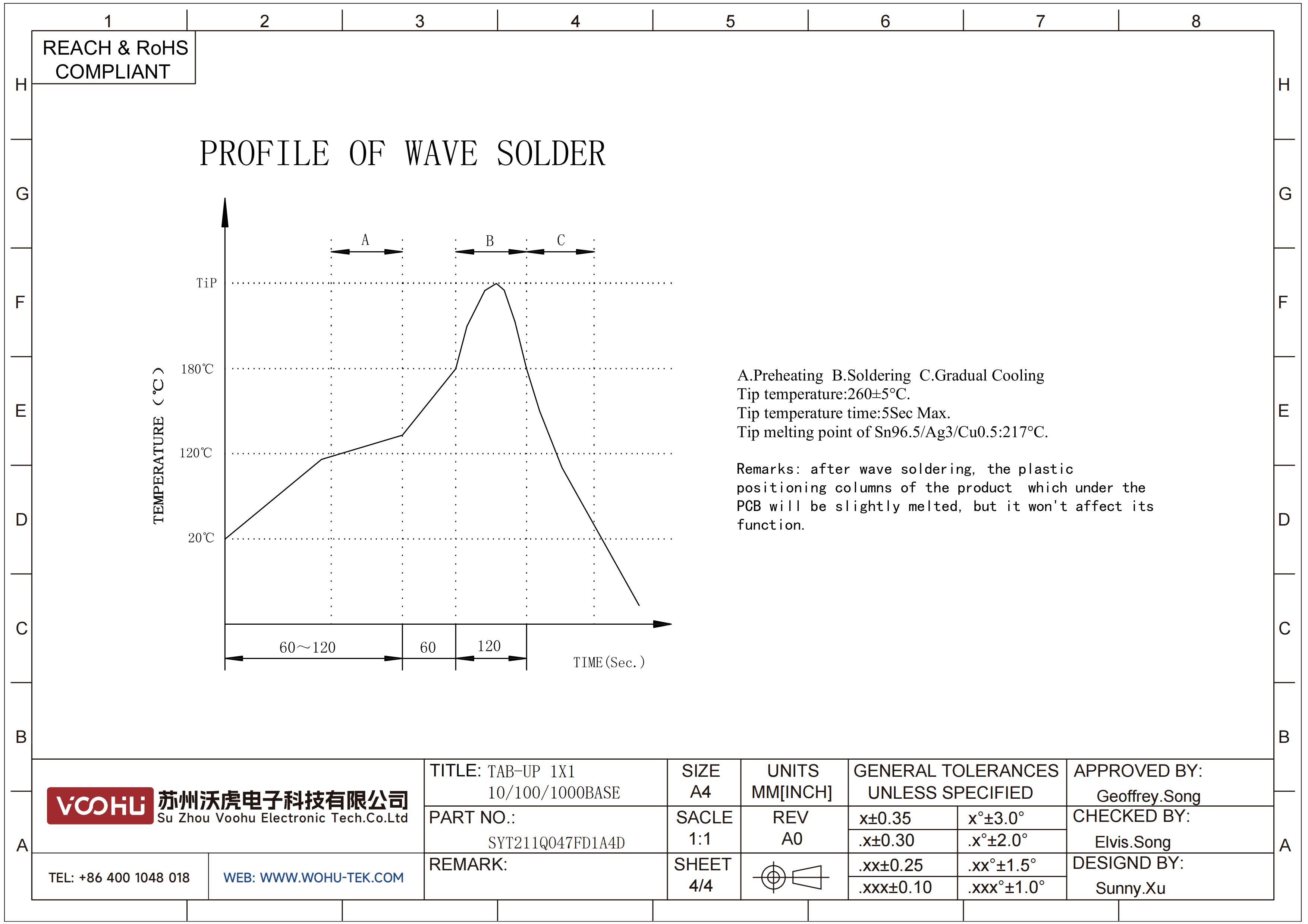 SYT114B002AB2A1D3  90° side insertion  1*4  LED G/Y Tab Down 10/100M  DIP RJ45