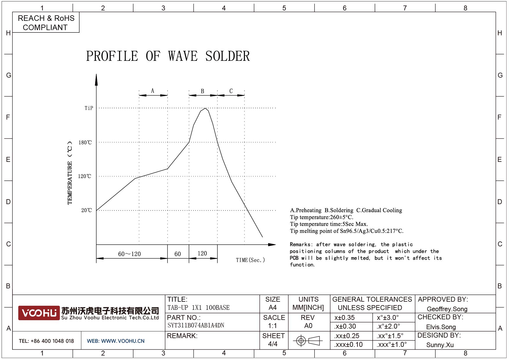 SYT511Q070AB2A8D 180° vertikal 1*1 Tab UP 100/1000M LED G/Y DIP RJ45