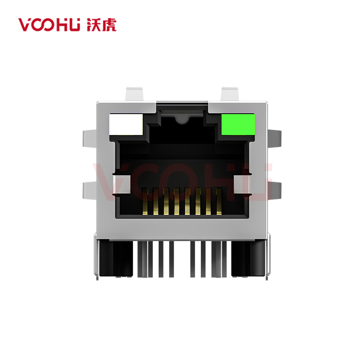 SYTCB701188AB1W9DB1157 90° seitlicher Einschub 1*1 Tab Up LED Y/G DIP RJ45 Offset-Stecker