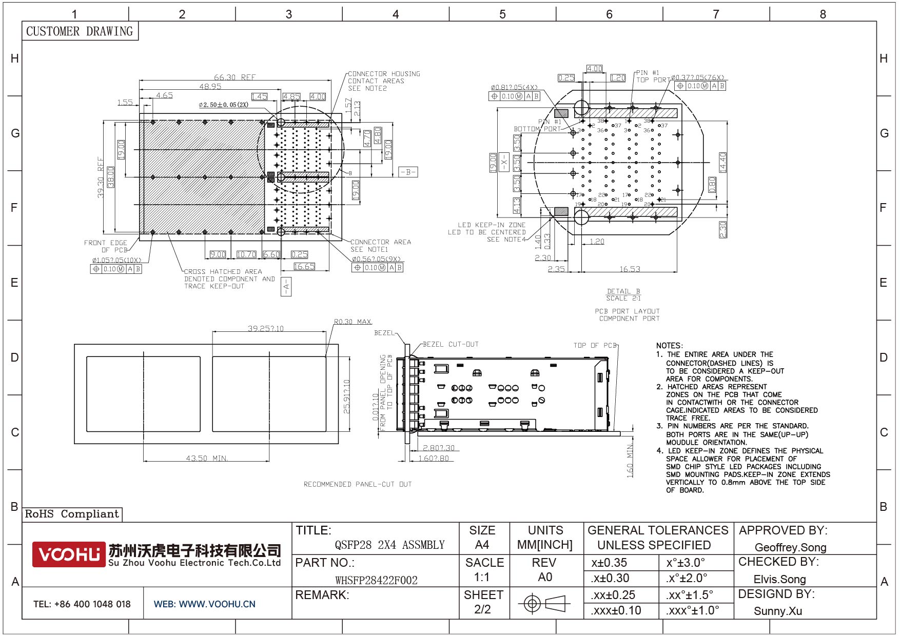 WHSFP28422F002 QSFP+ 2X2 ASSMBLY SMD