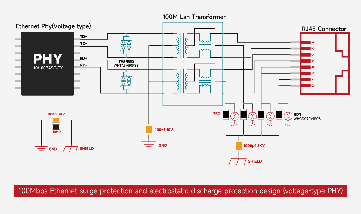 100-Mbit/s-Ethernet-Überspannungs- und statische Elektrizitätsschutz-Standardreferenz für SchaltungsdesignBei dieser Lösung handelt es sich um eine 100-Mbps-Ethernet-Standardlösung von VOOHU Electronics Technology. Das Unternehmen konzentriert sich seit über 8 Jahren auf elektronische Kommunikationskomponenten und folgt dabei der Geschäftsstrategie und Servicephilosophie „Wählen Sie VOOHU, wirklich zuverlässig“ und bietet umfassenden technischen Lösungssupport.