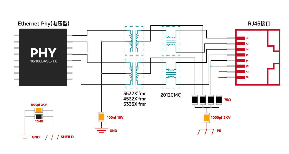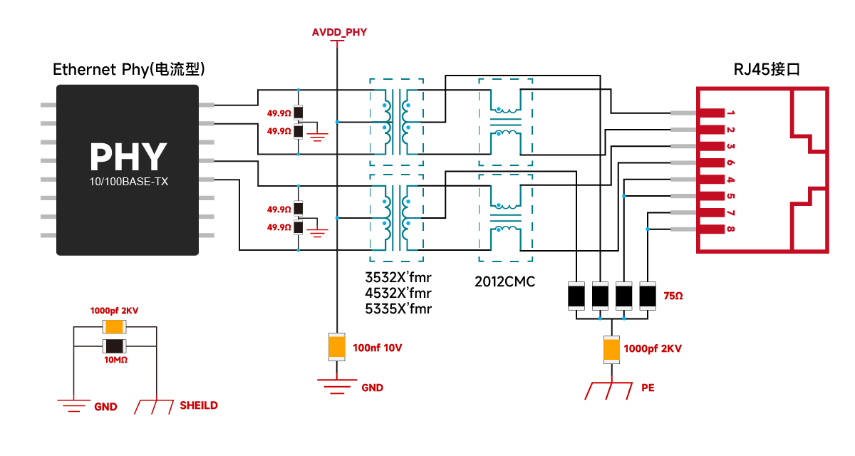 10/100BASE-T-Netzwerkschnittstelle & Chip Lan (induktiv) & Spannungstyp-PHY-Schaltungsdesign