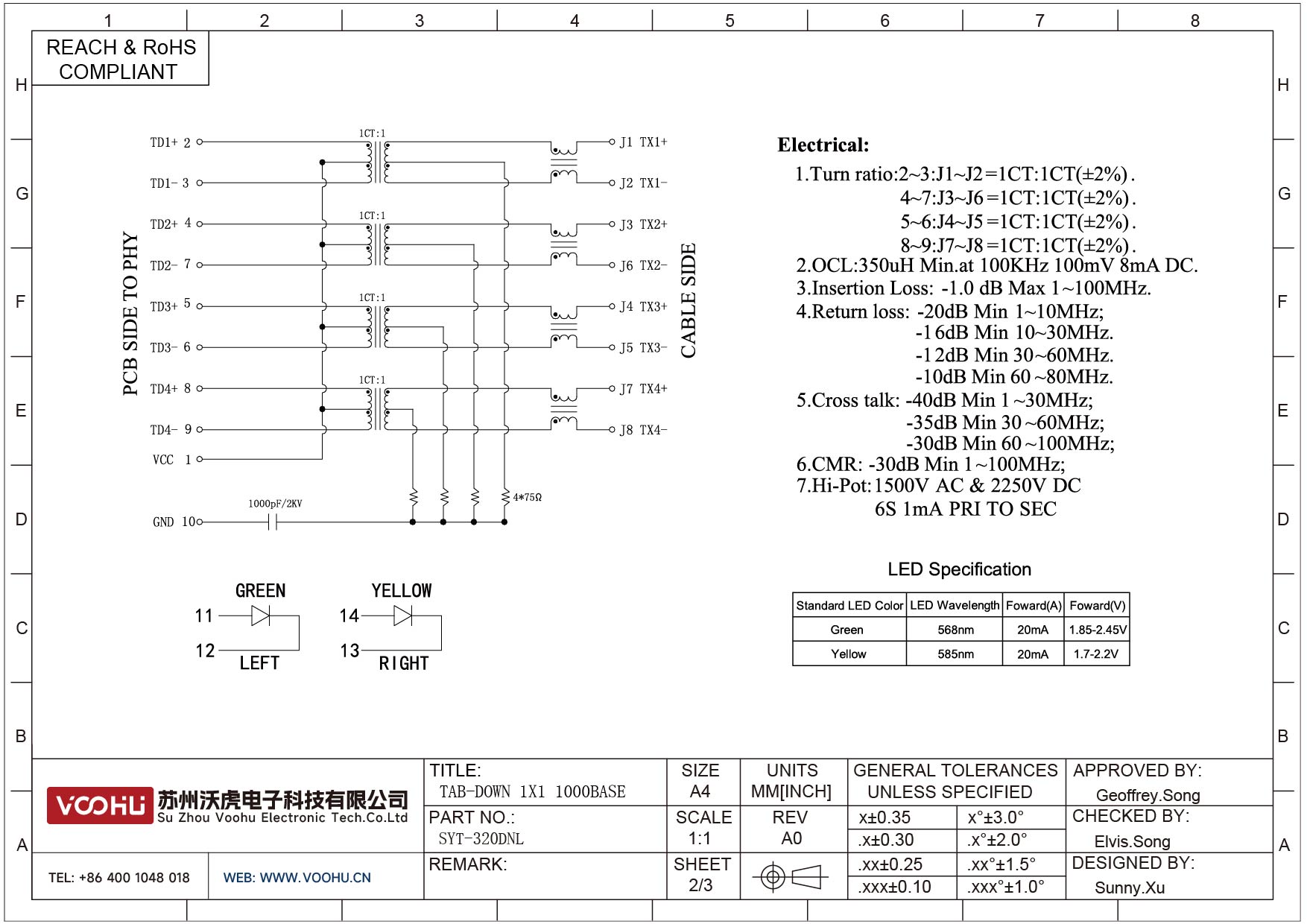 SYT-320DNL 90° side insertion 1*1 Tab Down 100/1000M LED G/Y DIP RJ45