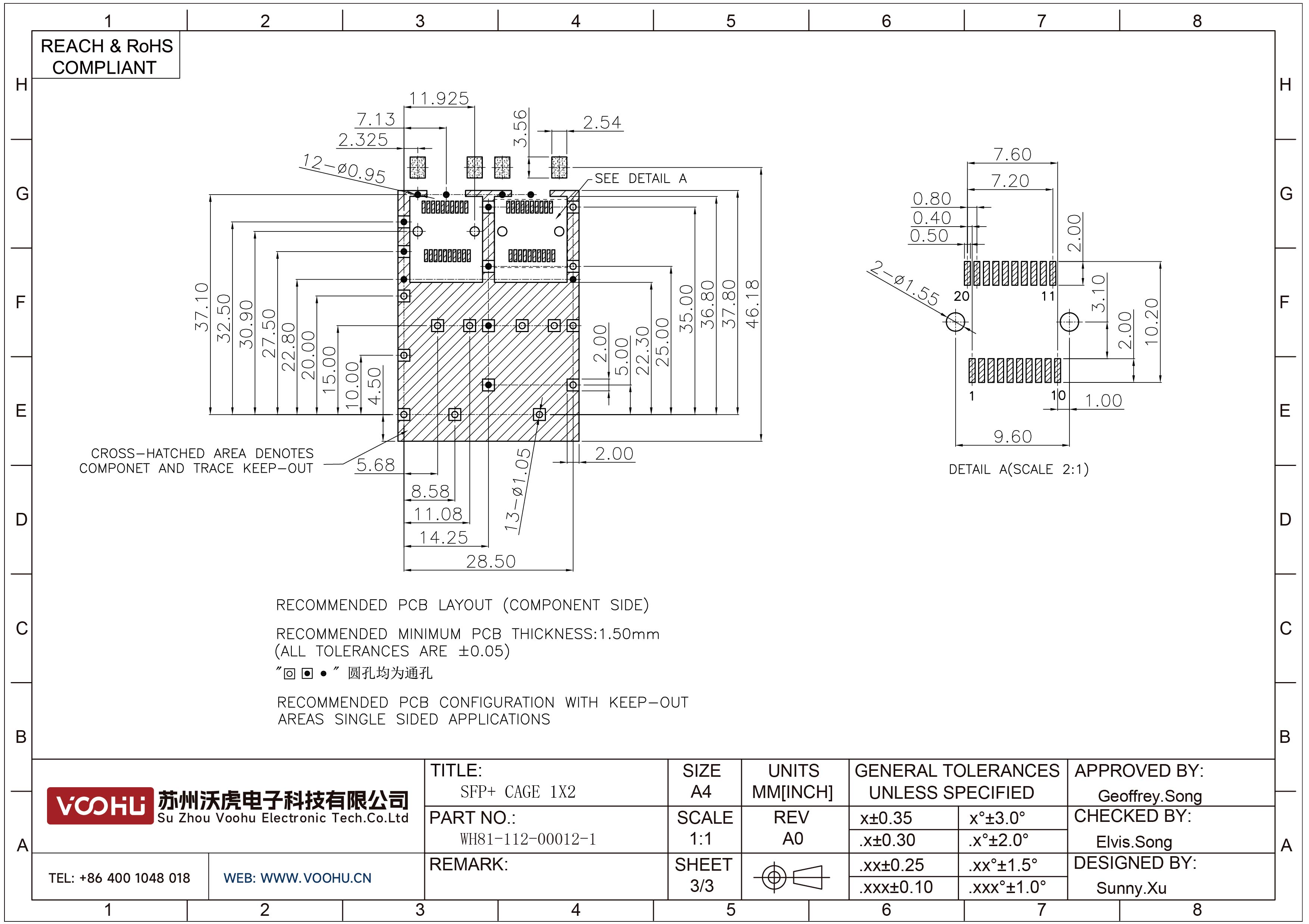 WH81-112-00012-1 SFP+ 1×2 10G Press-Fit Cage Fiber Optic cages