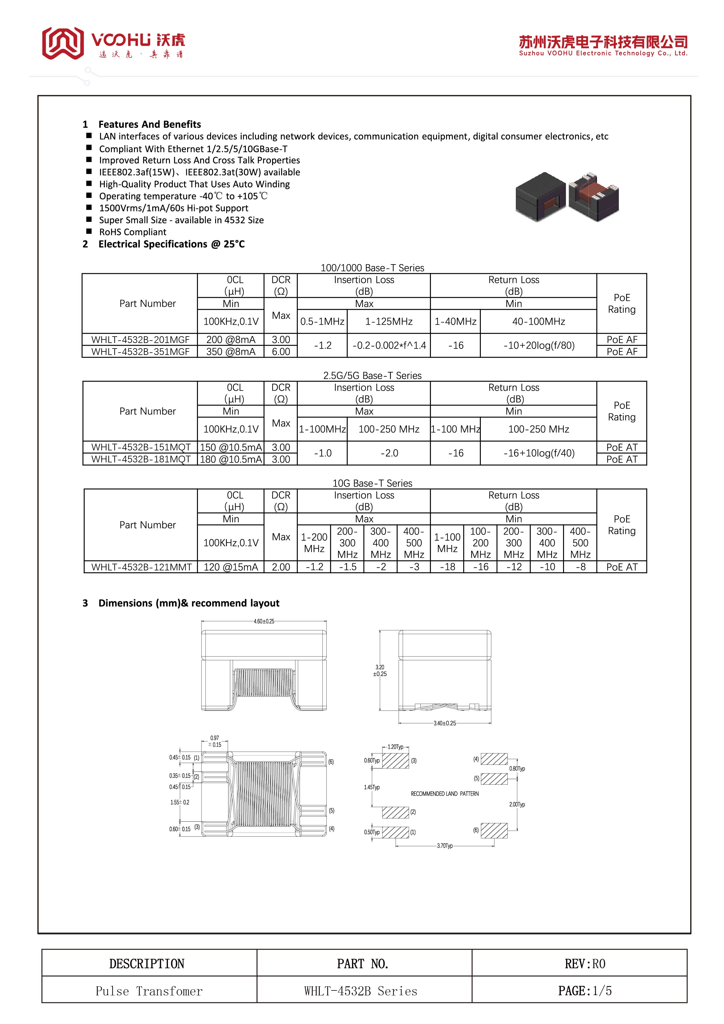 WHLT - 4532B - 201MGF 1GBASE - T X'FMR+CMC POE AF AF CHIP LAN