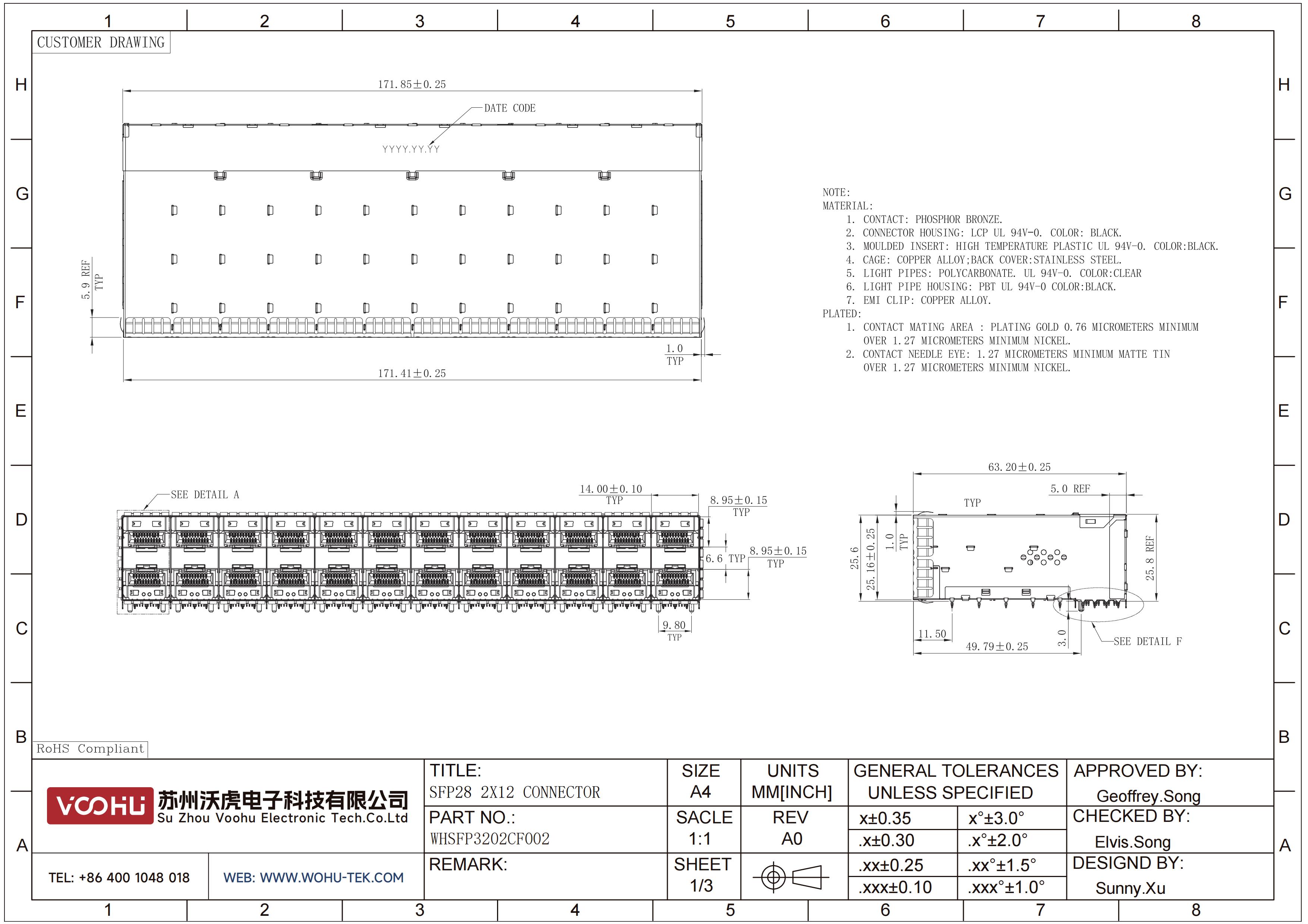 WHSFP3202CF002 SFP28 2×12 25G Cage+Connectors Fiber Optic cages