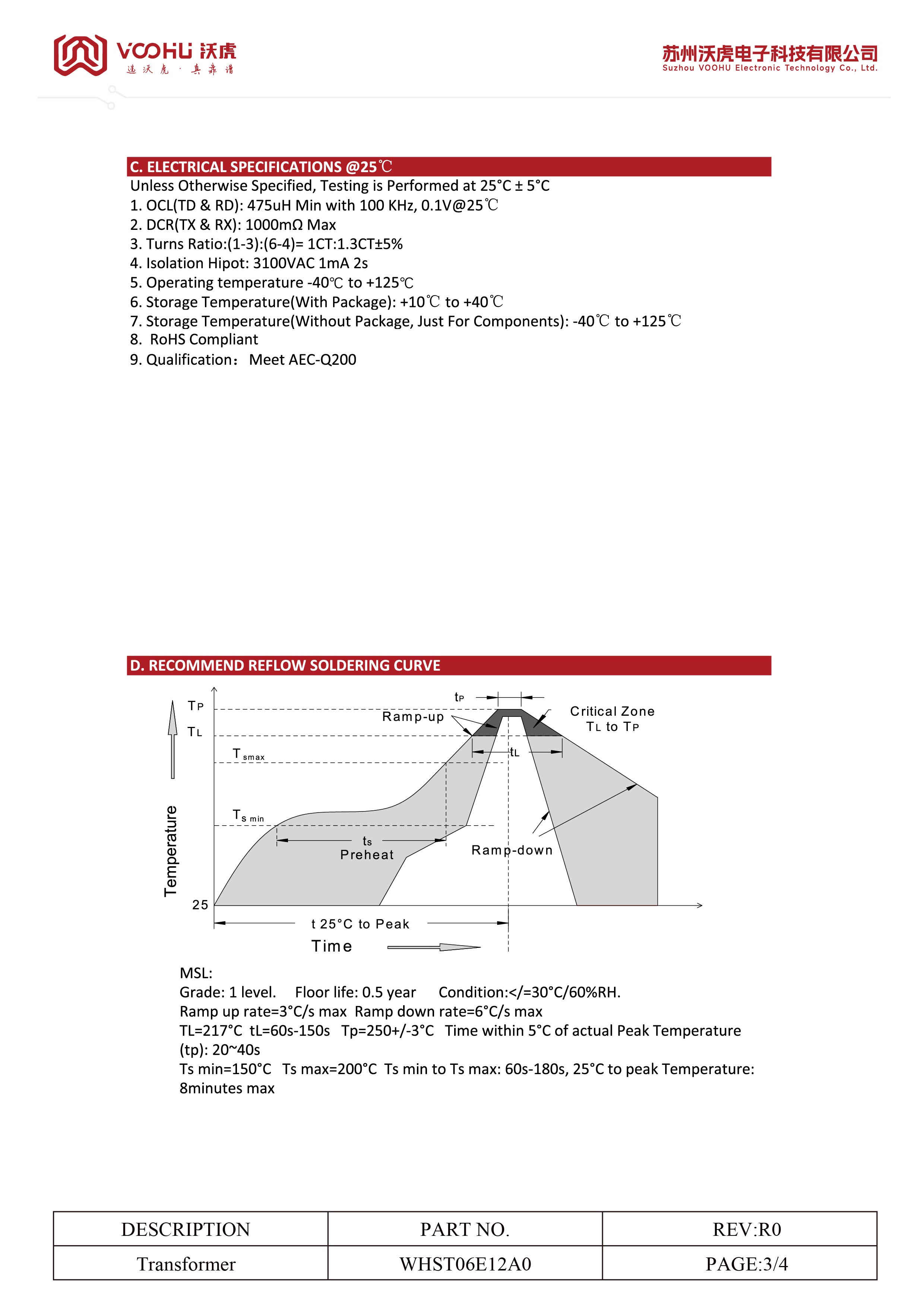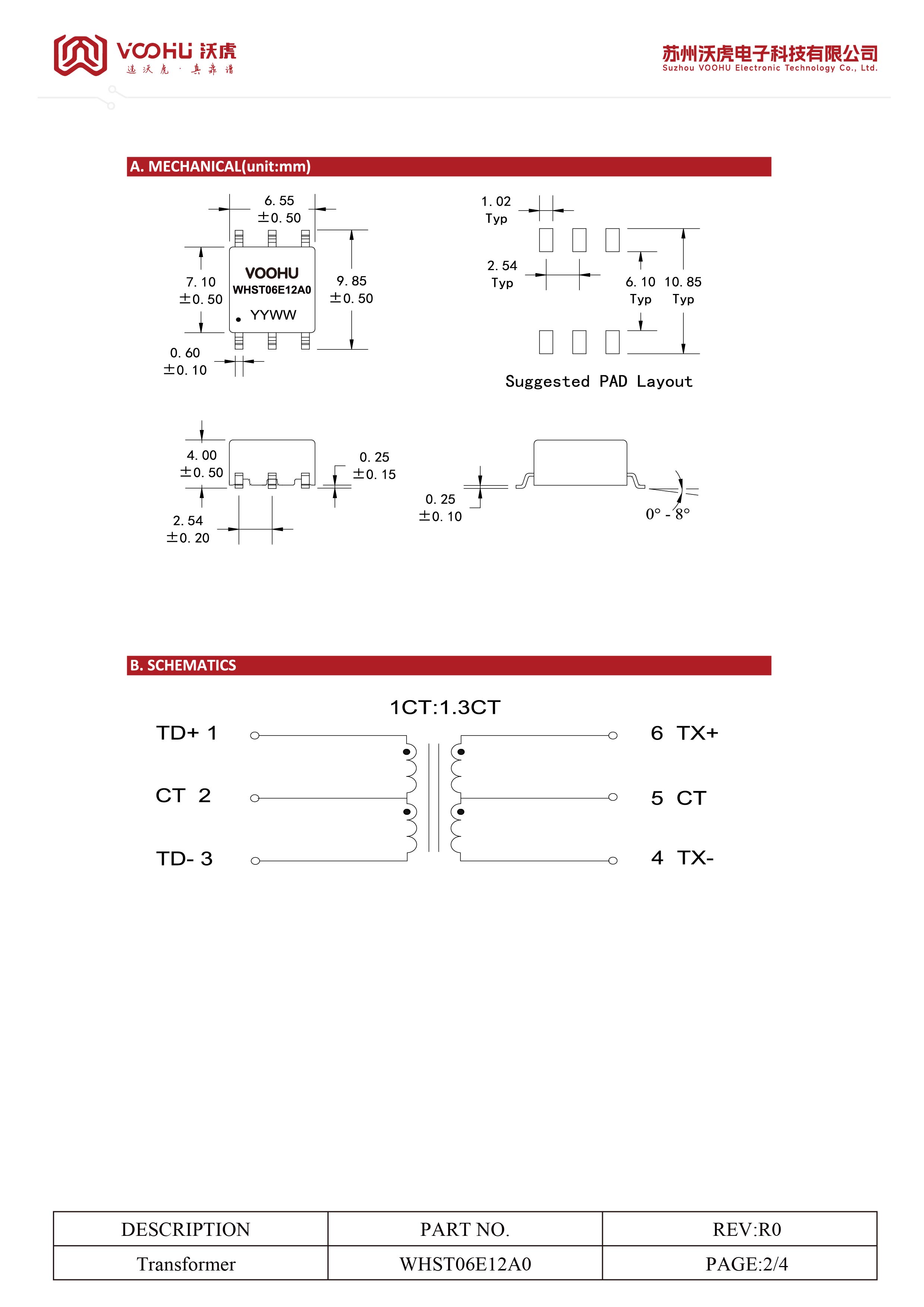 WHST06E12A0 L(μH)475 Turns Ratio 1:1.3 DCR1 1000mΩ DCR2 1000mΩ Isolation 3100VAC Push-Pull/Driver Transformers