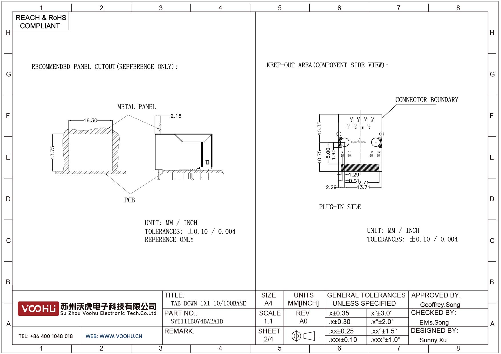 SYT59211118AB1A1DY4022 90° side insertion 1*1 Tab Down NO LED Shield Tabs DIP RJ45