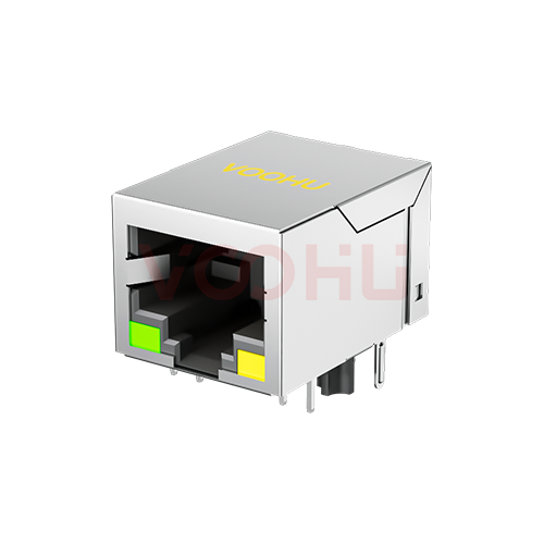 SYT111B074BA2A1D 90° 1*1 Tab Down 10/100M LED G/Y Shield Tabs DIP RJ45