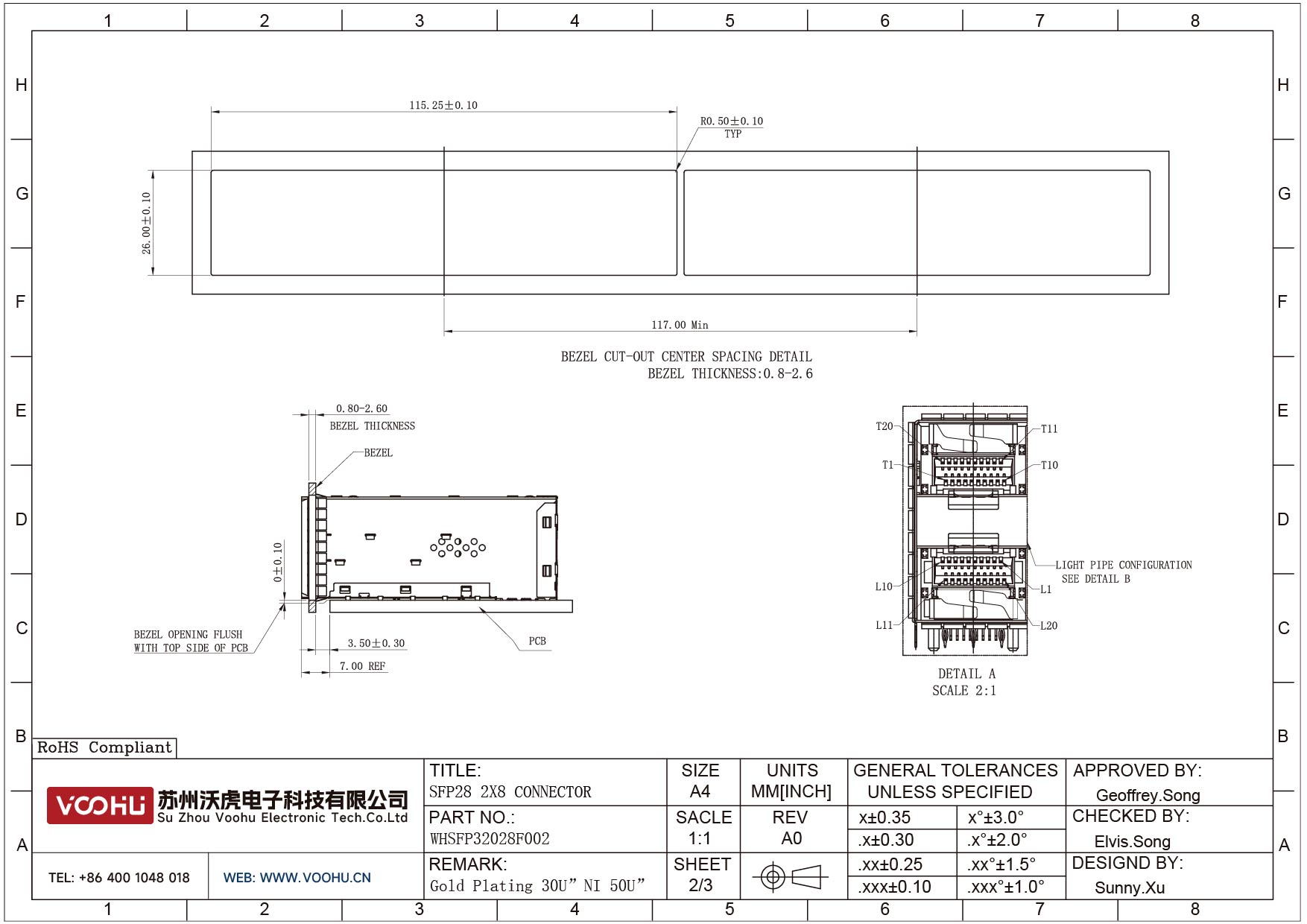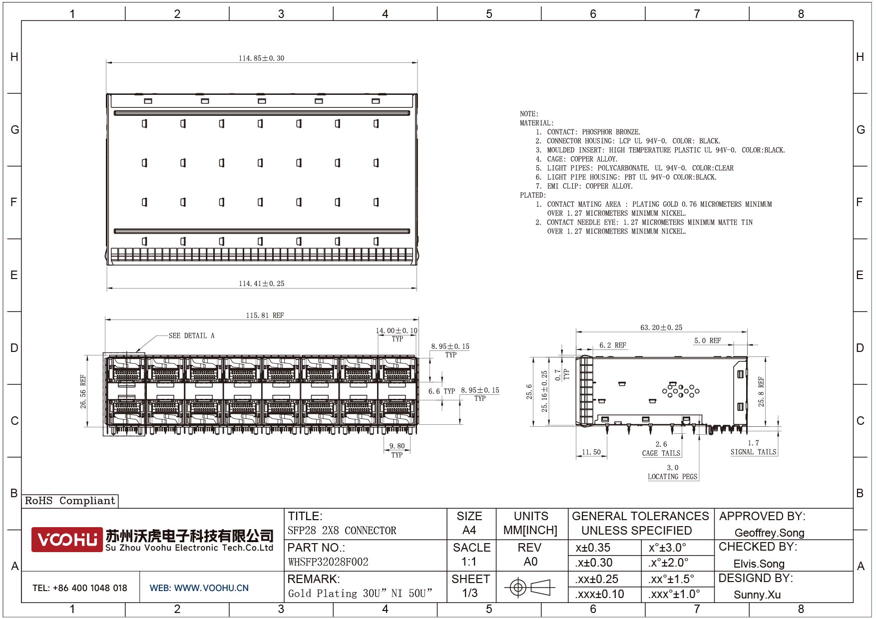 WHSFP32028F002 SFP28 2×8 25G Cage+Connectors Fiber Optic cages