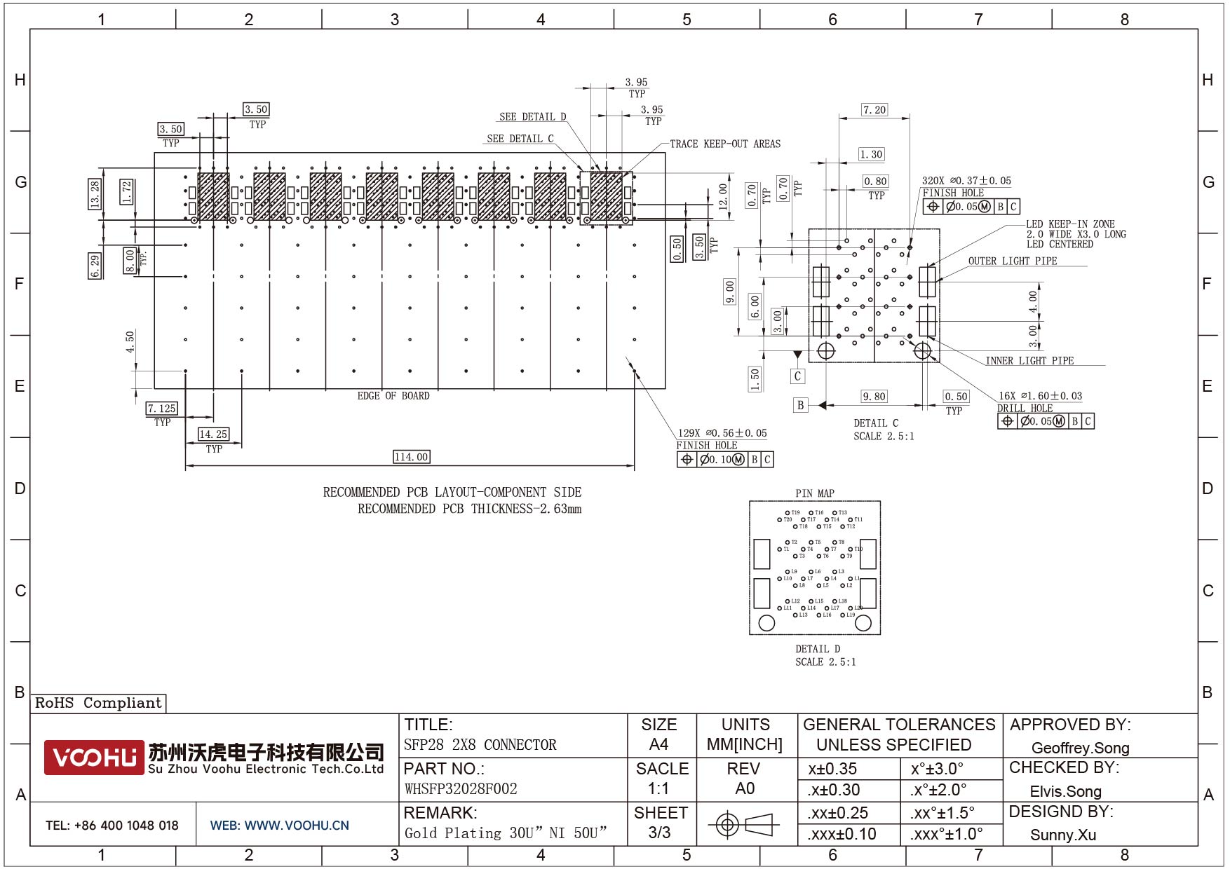 WHSFP32028F002 SFP28 2×8 25G Cage+Connectors Fiber Optic cages