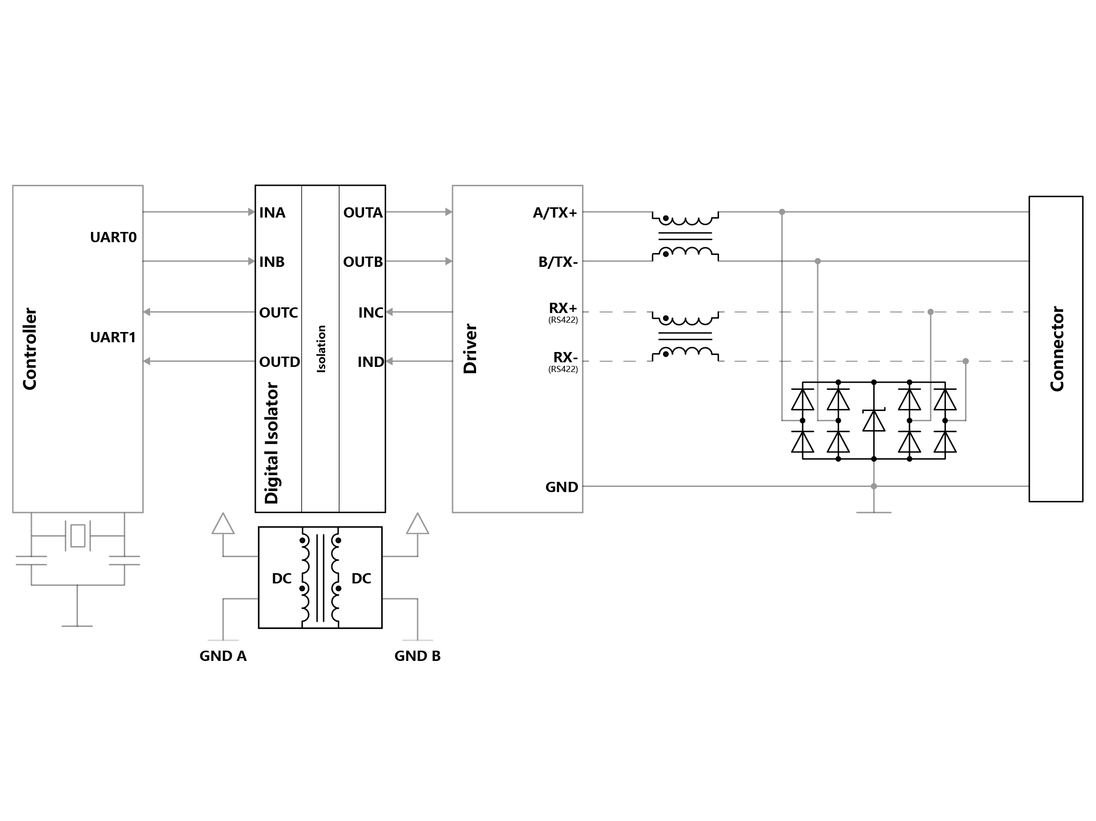 L'interface RS485 (norme recommandée 485) est utilisée pour la communication de données longue distance. Les données sont transmises de manière bidirectionnelle via une seule paire de fils, avec un taux de transfert de données maximum de 12 Mbps. Le câblage symétrique améliore l'immunité aux interférences électromagnétiques. La principale différence avec le RS422 réside dans l’utilisation de deux paires de fils, chacune utilisée de manière unidirectionnelle.