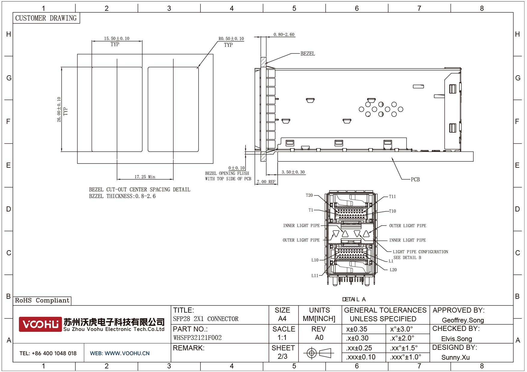 WHSFP32121F002 SFP28 2×1 25G Cage+Connectors Fiber Optic cages