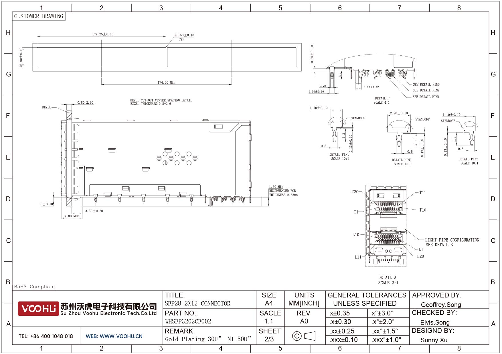 WHSFP3202CF002 SFP28 2×12 25G Cage+Connectors Fiber Optic cages
