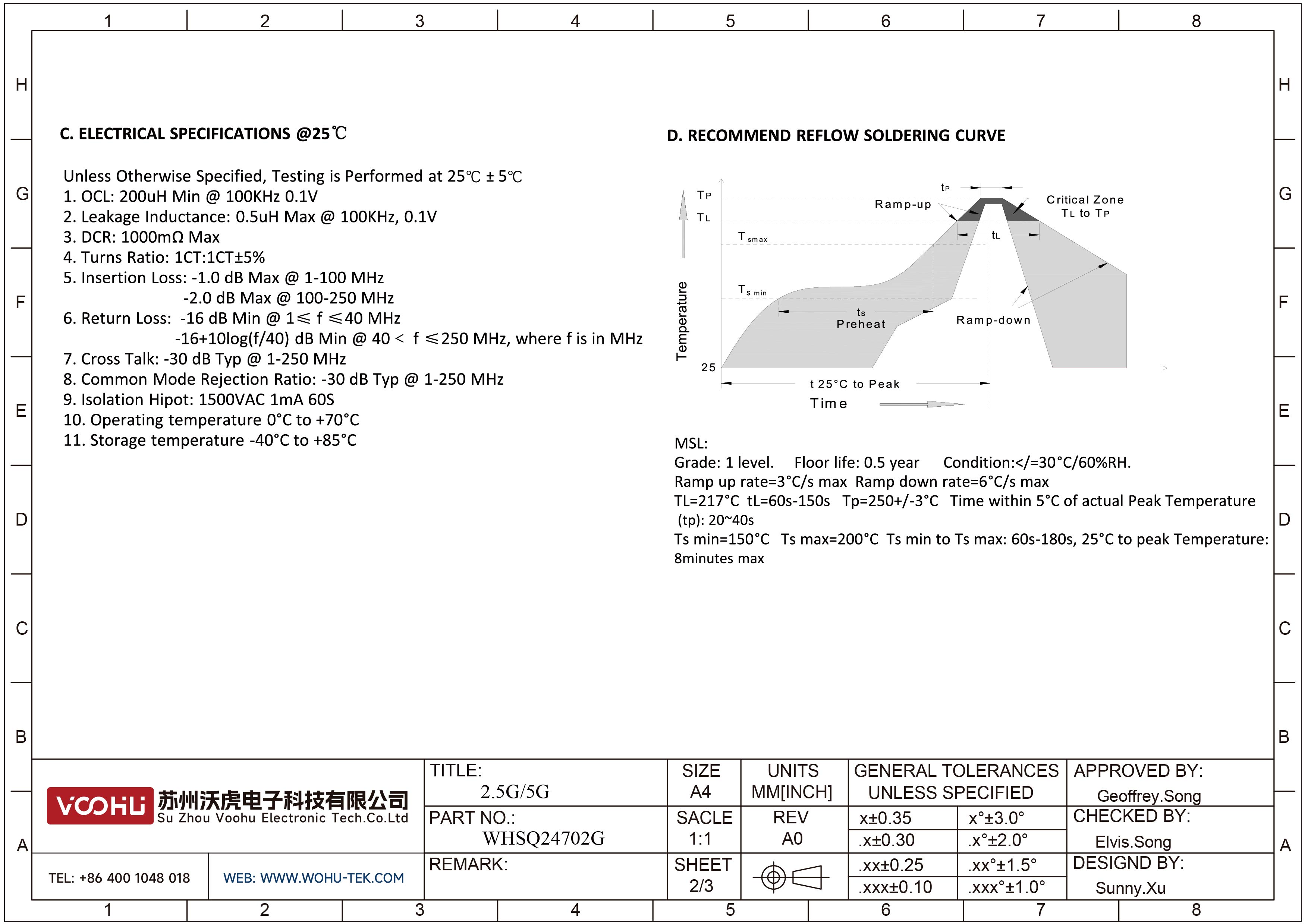 WHSQ24702G シングルポート SMD 2.5G/5G PIN24 LAN トランス