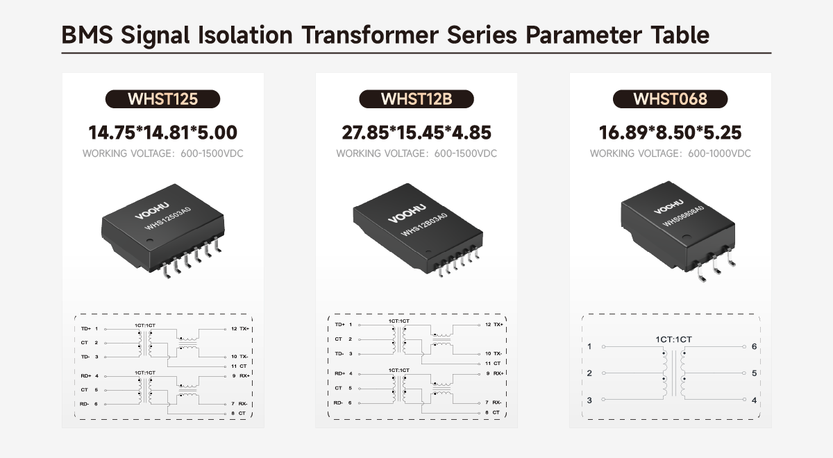 Compared to the arbitration delay and broadcast storm risk of CAN bus, the deterministic communication timing of the daisy-chain topology ensures voltage and temperature sampling synchronization accuracy of <1μs. Compared to the point-to-point limitations of traditional SPI, VOOHU's isolated SPI solution extends the transmission distance to over 15 meters through isolation transformer coupling, supporting up to 16 cascaded levels, perfectly adapting to various battery pack physical layouts from 48V mild hybrid to 800V high-voltage platforms.