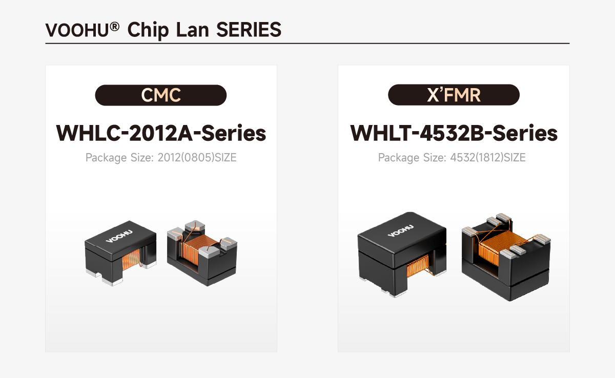 Voohu introduces a new type of chip network transformer (Chip Lan) with leading fully automated production. It adopts an H+I structure and a fully automated production mode, breaking through the traditional toroidal wound transformer and inductor design schemes to achieve large-scale, fully automated production. The product complies with EU RoHS 2.0 standards and is compatible with products from major global PHY chip suppliers.
