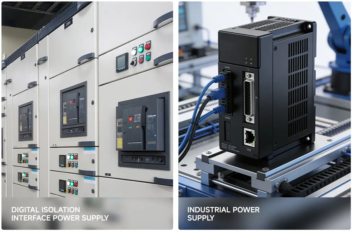 Application 1: Powering Digital Isolation InterfacesIn industrial environments, bus communications such as RS485 and CAN often face the problem of ground potential difference interference. If the power supply end of the communication interface is not isolated, the isolation device may fail due to excessive common-mode voltage.