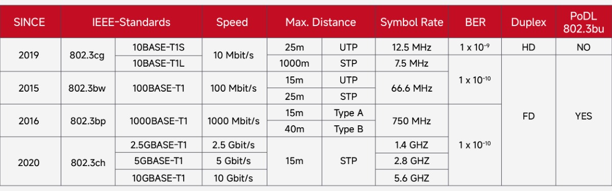 1. Compared to 2-pair and 4-pair cabling, single-pair cables reduce cost, weight, and space requirements.