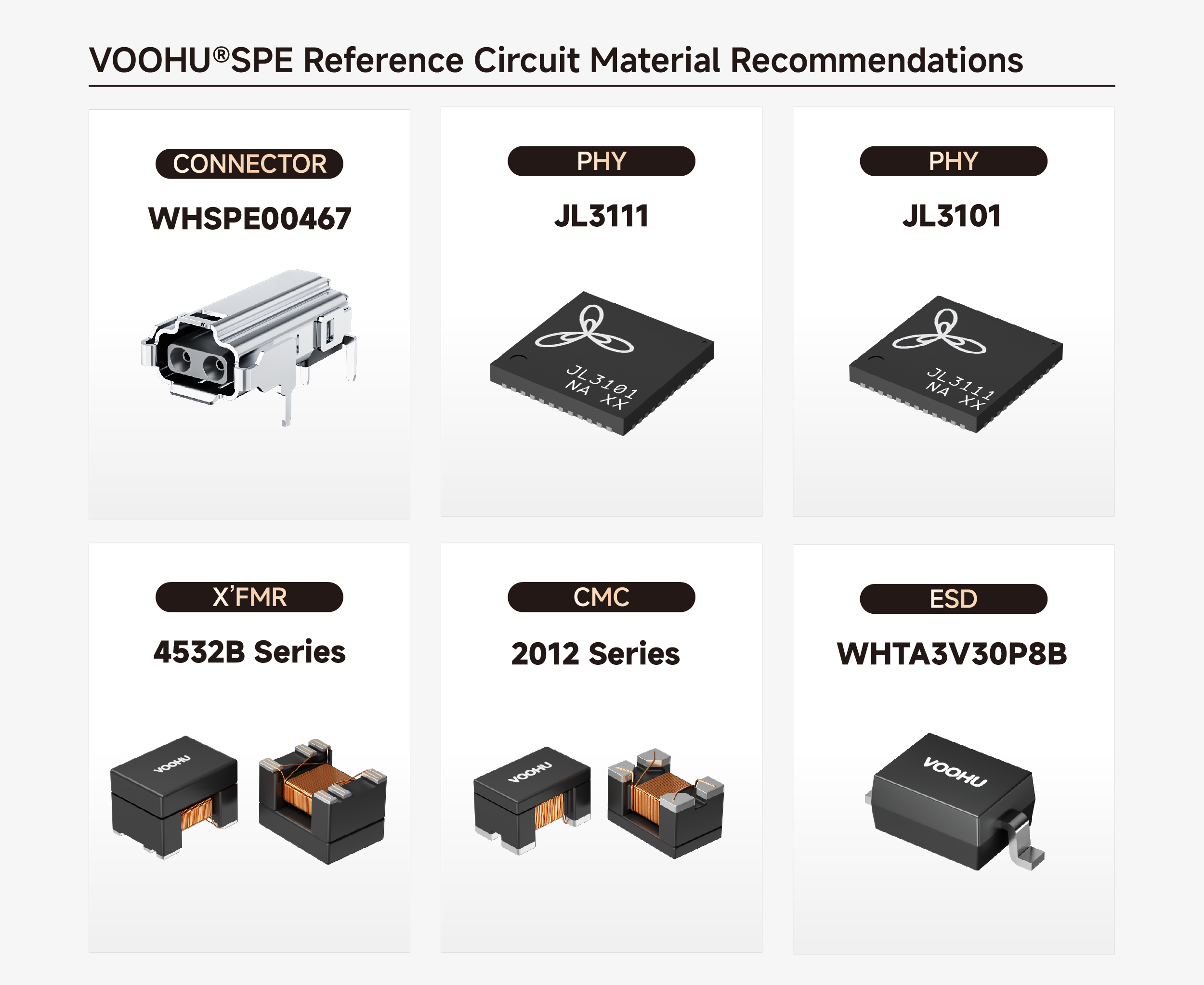 This solution is VOOHU Electronics’ standard solution for SPE Single Pair Ethernet. The company has focused on the field of communication electronic components for over 9 years, adhering to the business philosophy and service concept of “Choose VOOHU – Truly Reliable”, and providing comprehensive technical solution support.