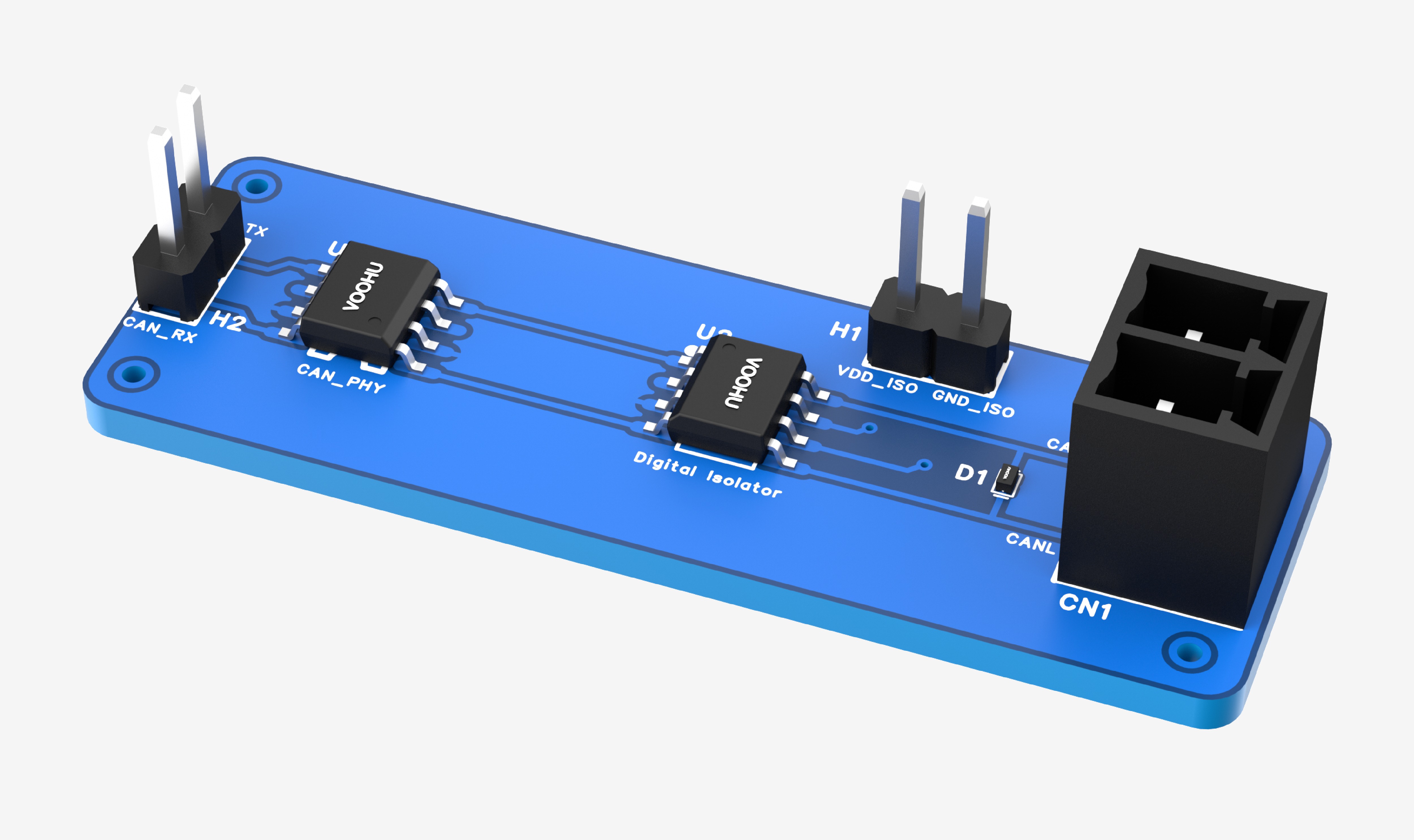 A digital isolator is used to isolate the logic signals (TX, RX) between the CAN transceiver and the controller, breaking ground loops and common‑mode noise. Capacitive isolation technology is commonly used, modulating high‑speed signals across an isolation barrier via capacitors, offering low power consumption, small size, and significant cost advantages.