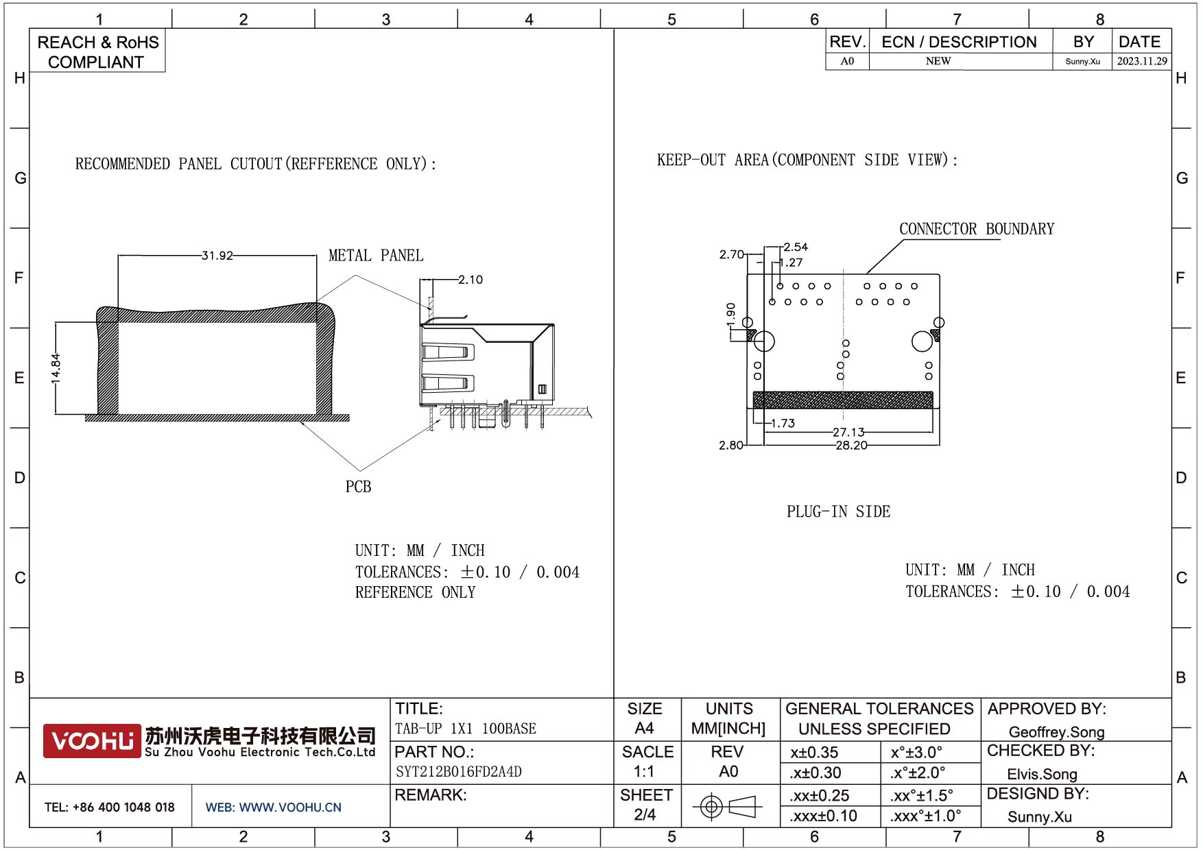 SYT212B016FD2A4D 90° side insertion 1*2 Tab Up LED G/Y 10/100M DIP RJ45