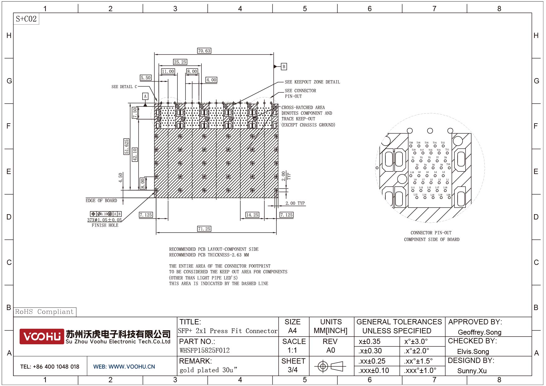 WHSFP15825F012 SFP+ 2×5 10G Press-Fit Cage+Connector Connector Gold Plated30U Fiber Optic cages