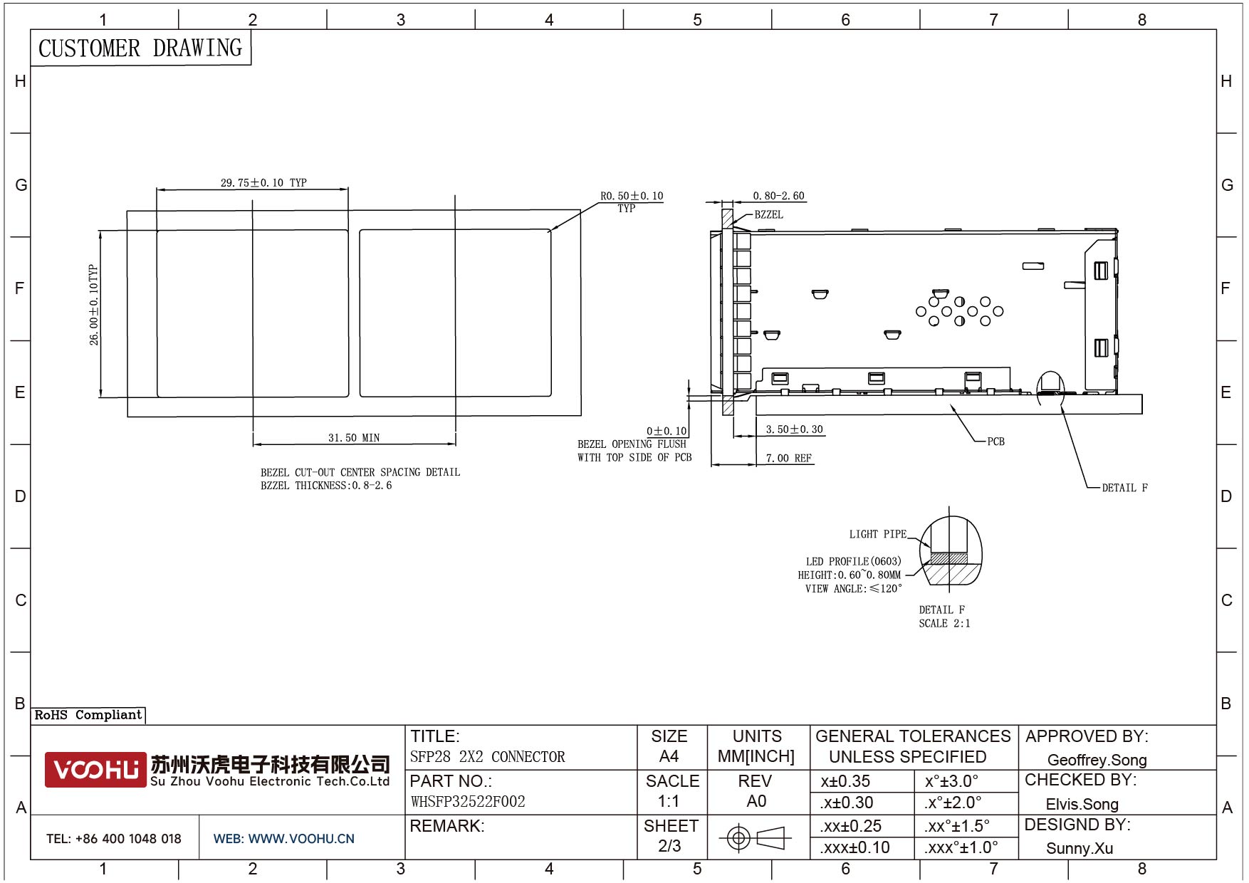 WHSFP32522F002 SFP28 2×2 25G Cage+Connectors Fiber Optic cages