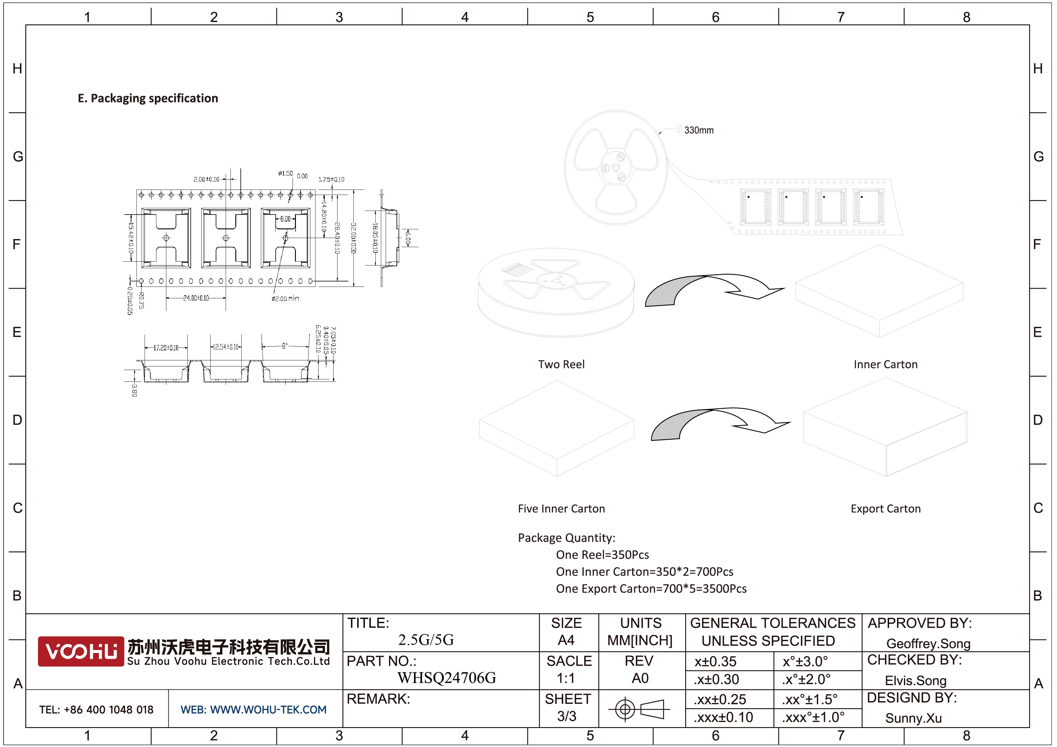 WHSQ24002TG  Single Port SMD 2.5G/5G  PIN24 non-PoE Lan Transformer