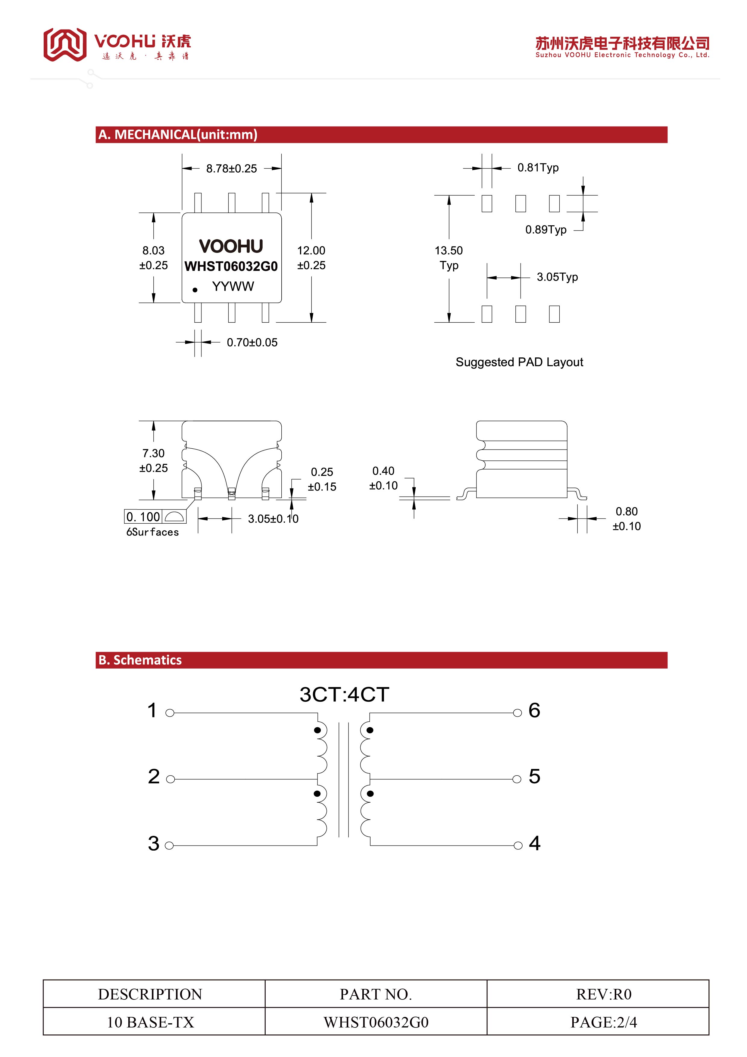 WHST06032G0 L(μH) 680 Turns Ratio 3:4 DCR1 750mΩ DCR2 900mΩ Isolation 4000VAC Push-Pull/Driver Transformers