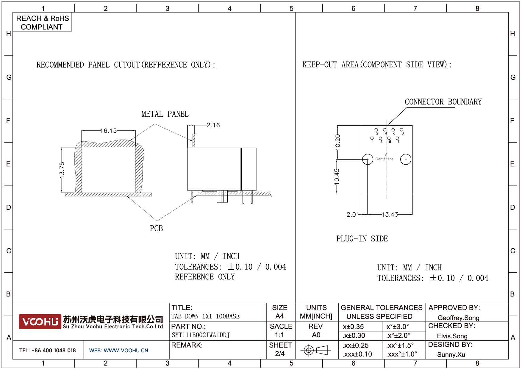 SYT111B002IWA1DDJ 90°侧插 1*1 Tab Down 10/100M 无 LED DIP RJ45