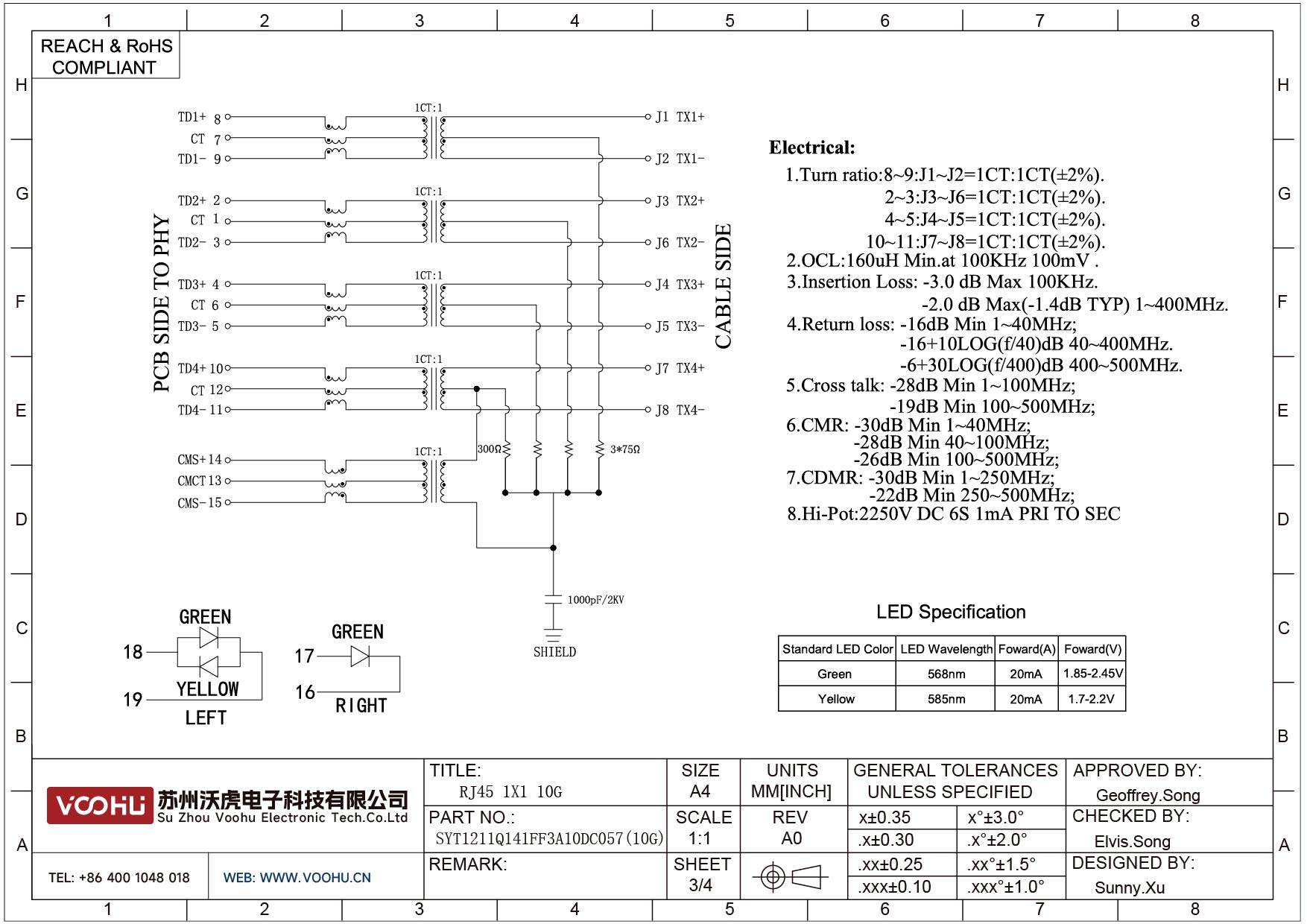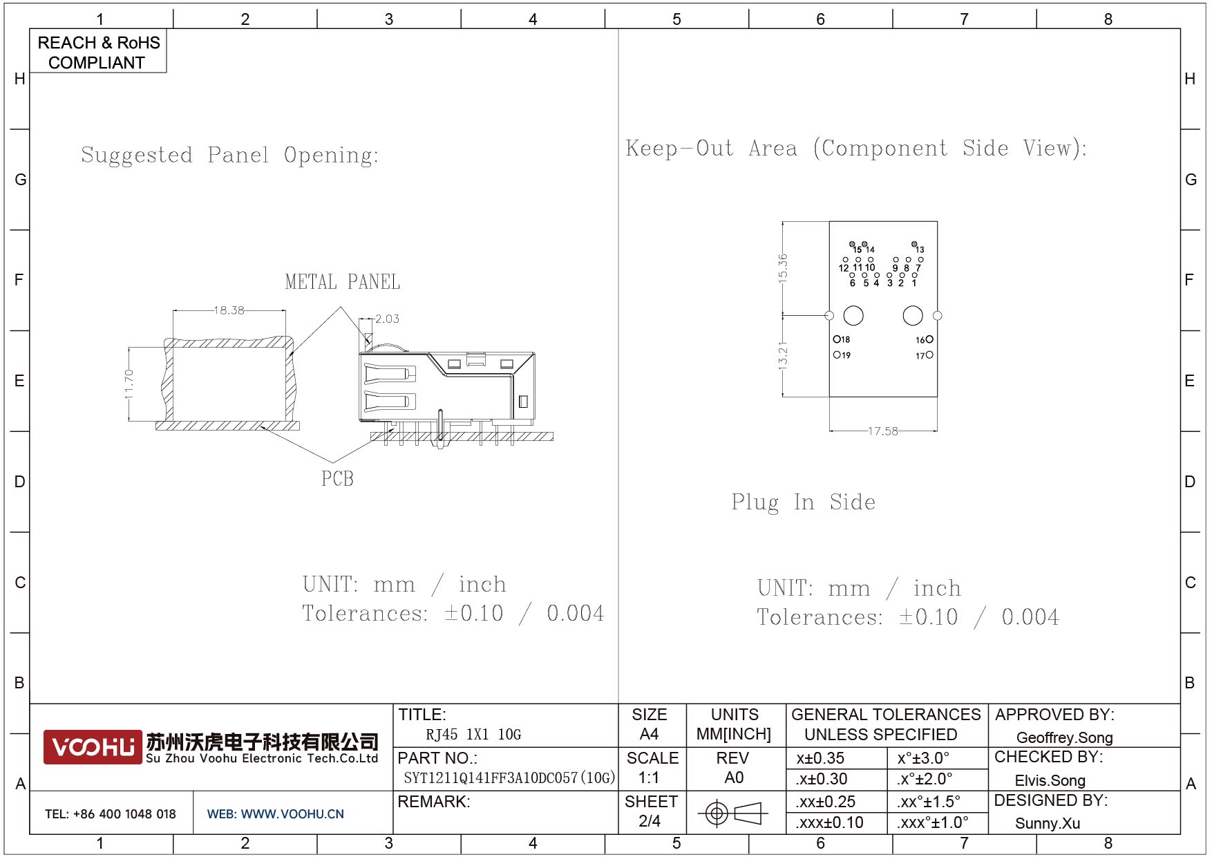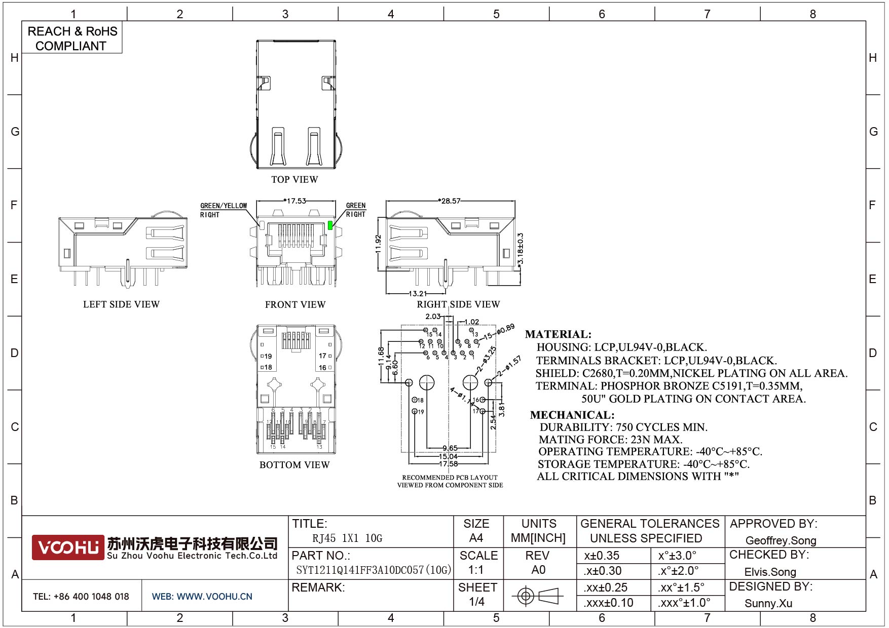 SYT1211Q141FF3A10DC057 90°侧插 1*1 Tab Down GY/G 10G DIP RJ45 (薄型)