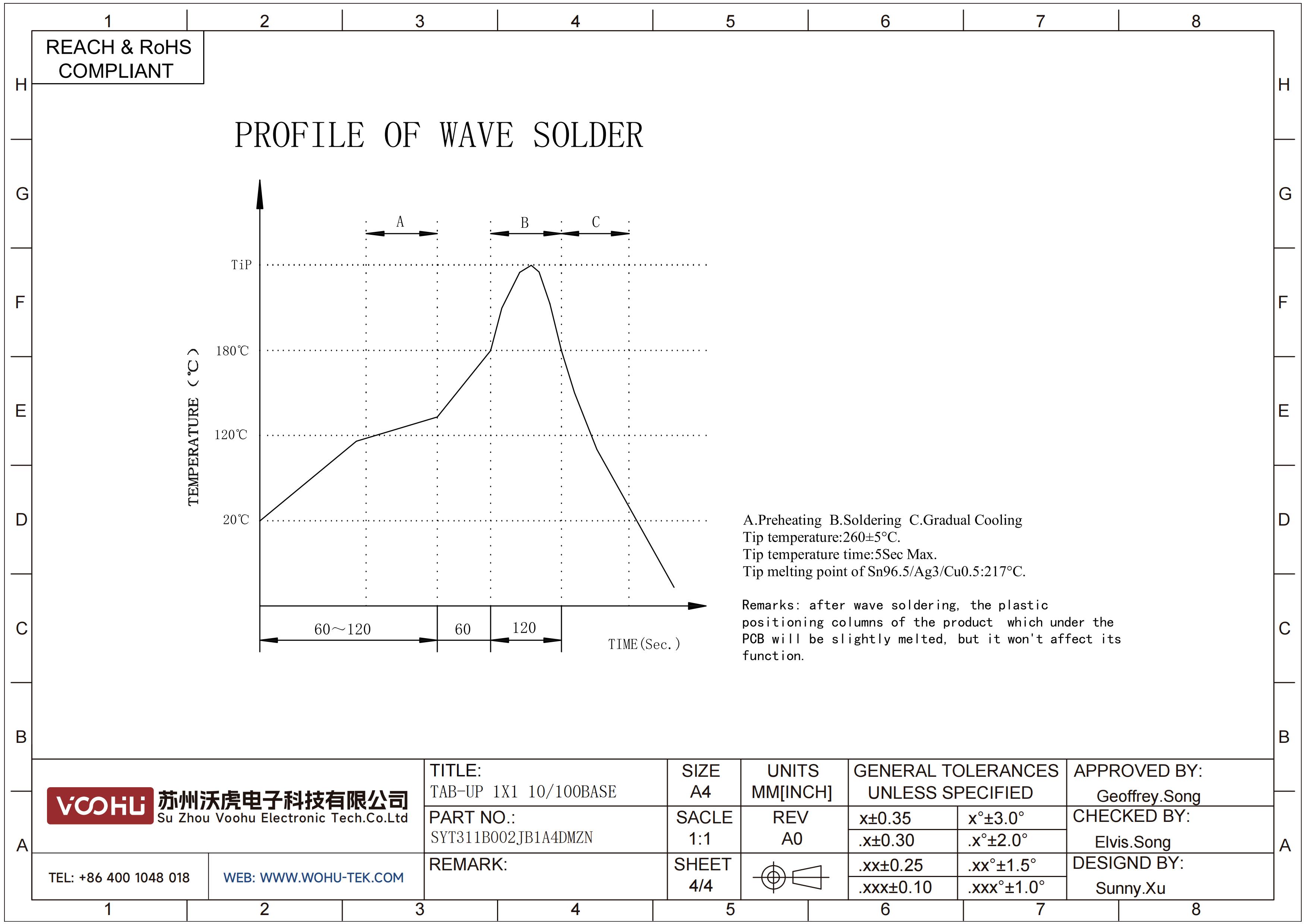 SYT311B002JB1A4DMZN 90° side insertion 1*1 Tab UP Y/G 10/100M DIP RJ45