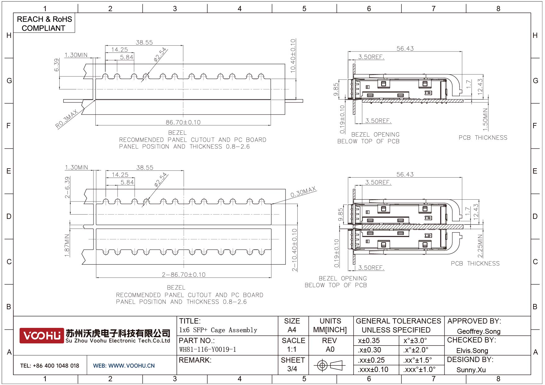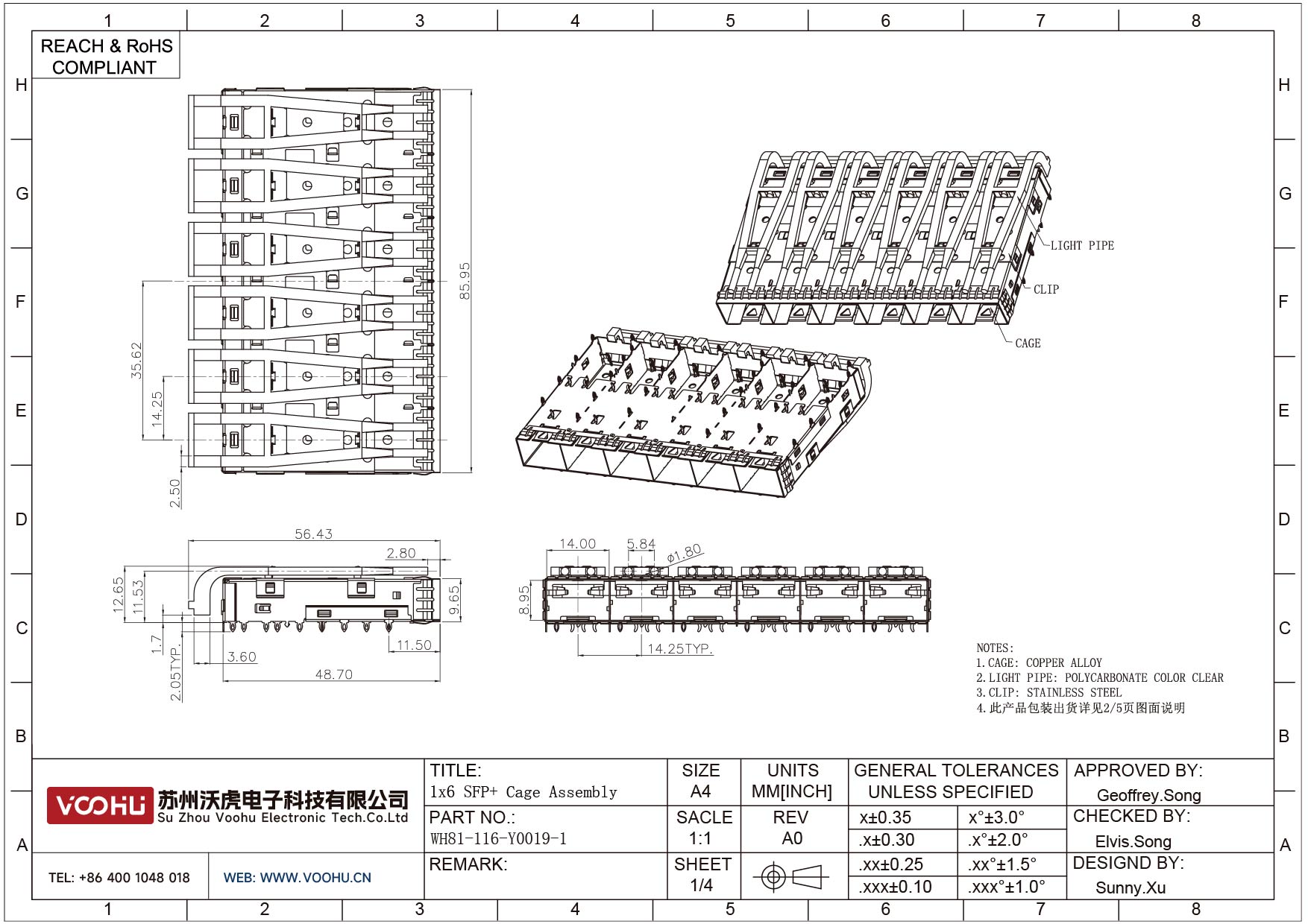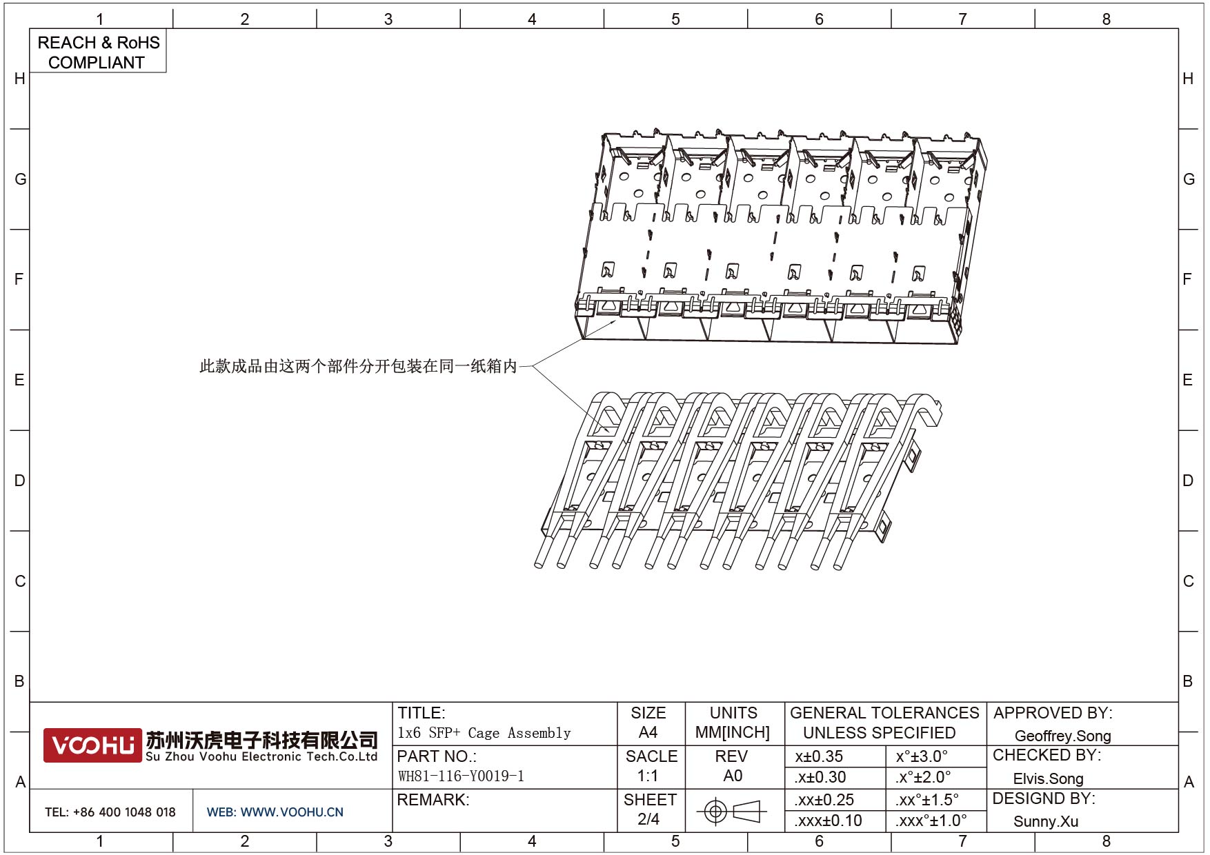 WH81-116-Y0019-1 SFP+ 1×6 10G Press-Fit Cage Fiber Optic cages
