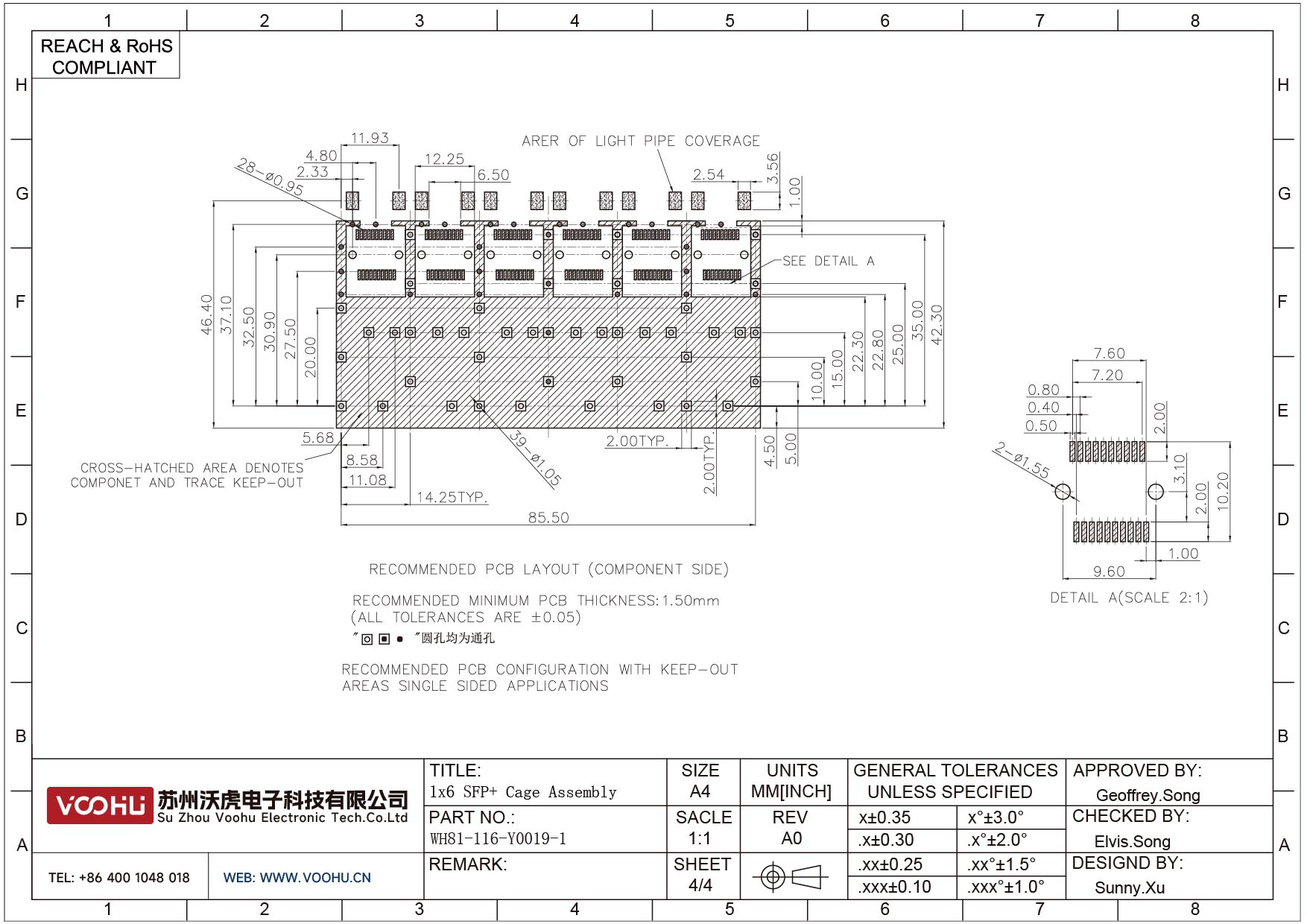 WH81-116-Y0019-1 SFP+ 1×6 10G Press-Fit Cage Fiber Optic cages