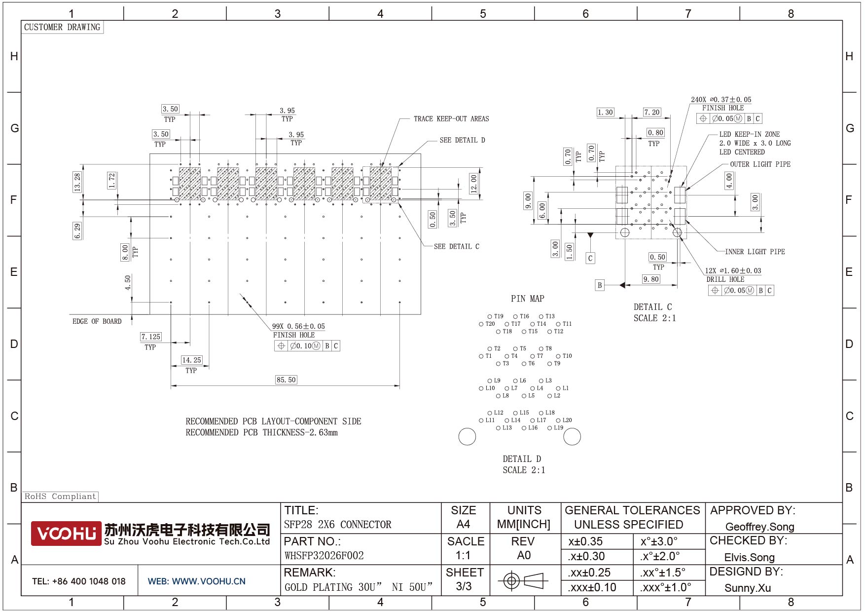 WHSFP15926F008 SFP+ 2×6 10G Press-Fit Cage+Connector Connector Gold Plated30U Ni 30U Fiber Optic cages