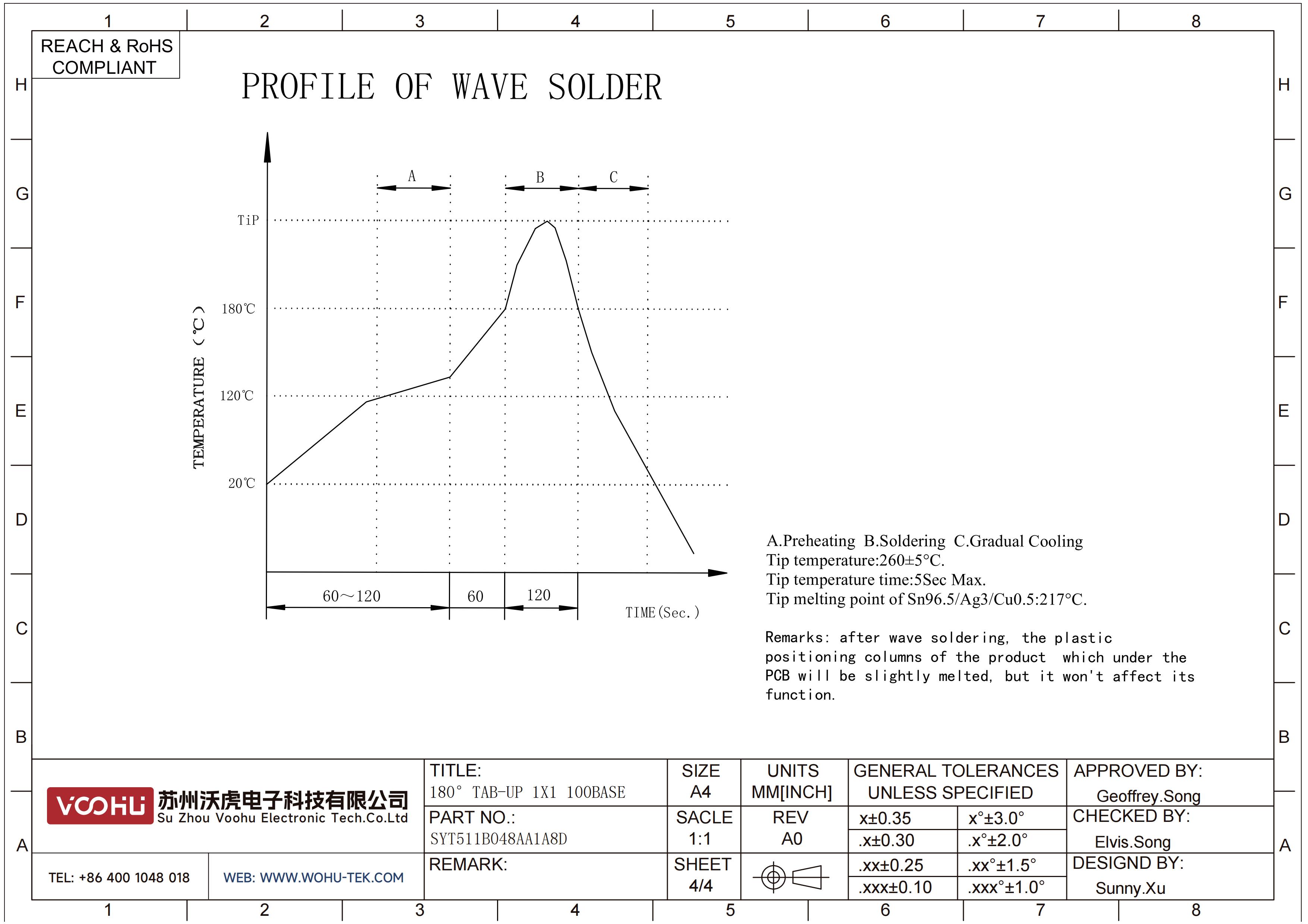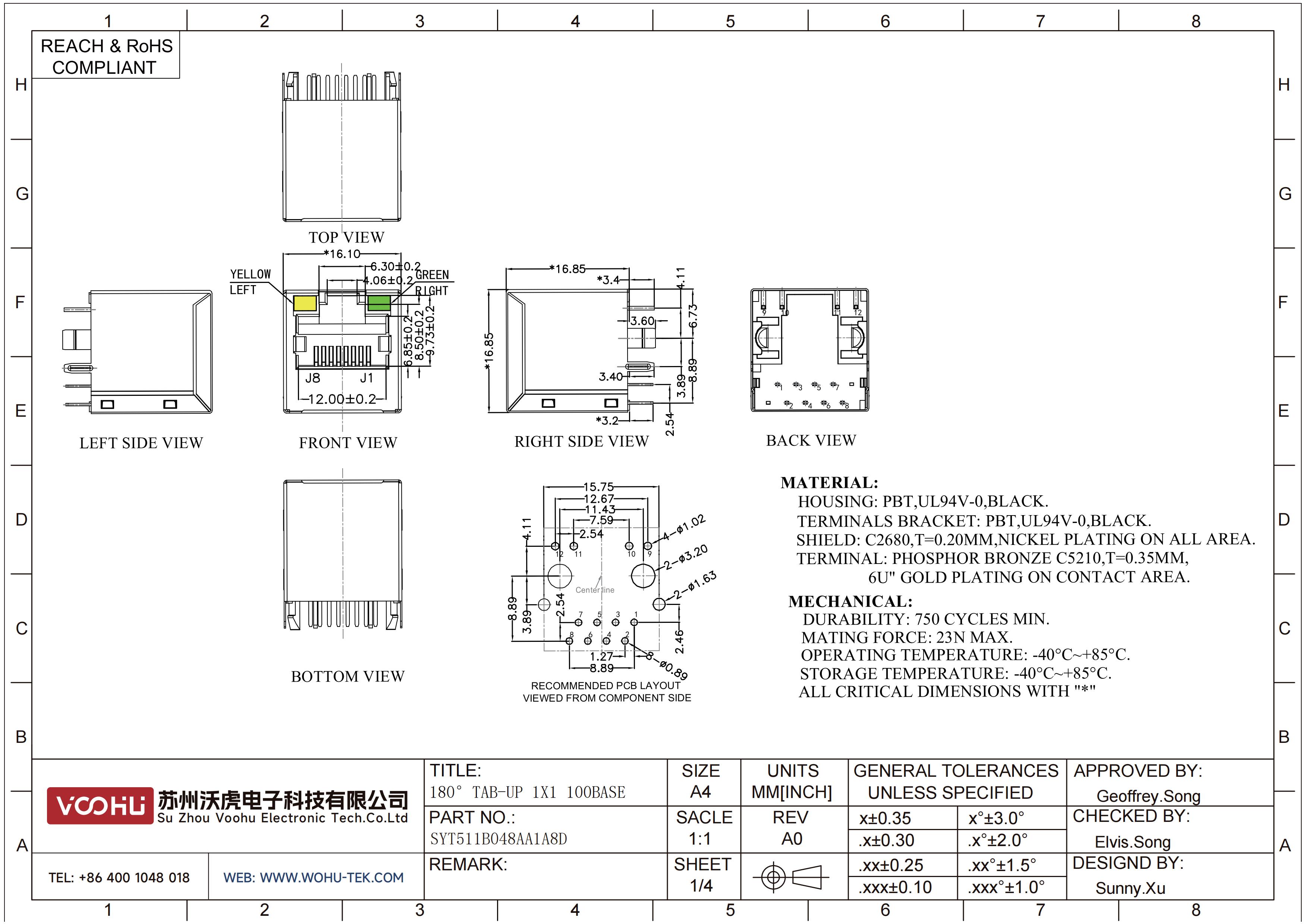 SYT511B048AA1A8D 180°垂直 1*1 Tab UP 10/100M LED Y/G DIP RJ45