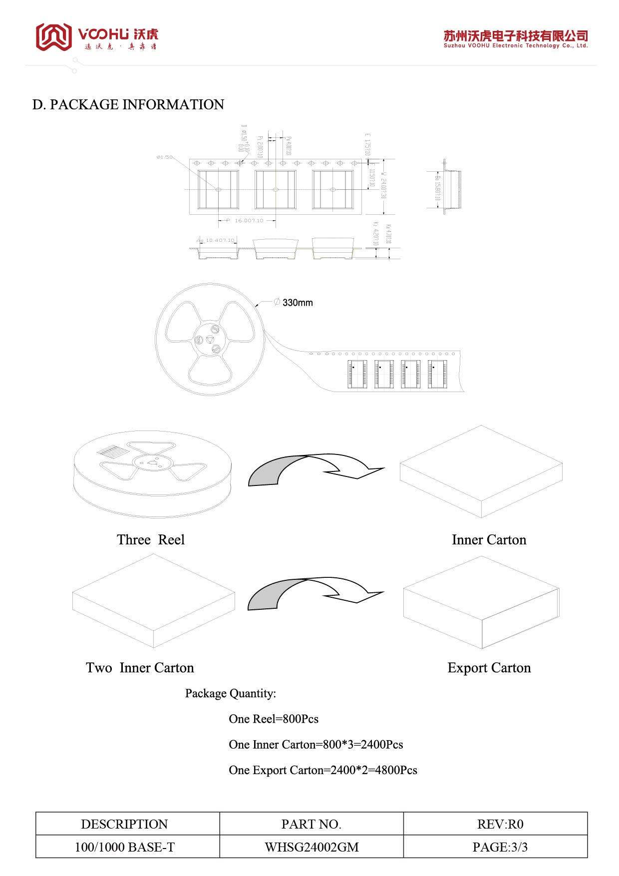 WHSG24002GM 单端口 SMD 千兆底座-T PIN24 非-PoE LAN 变压器